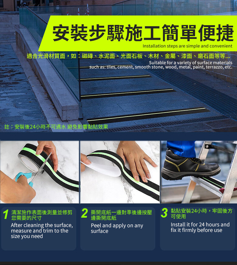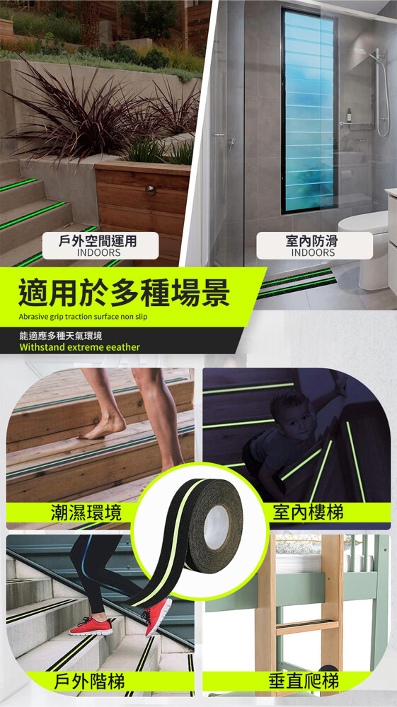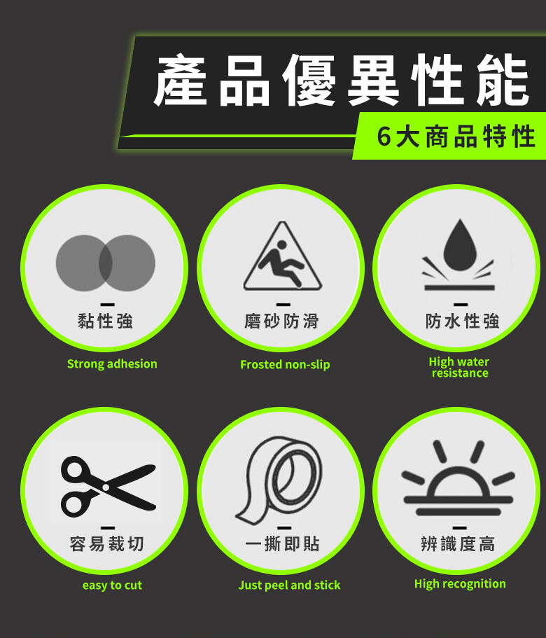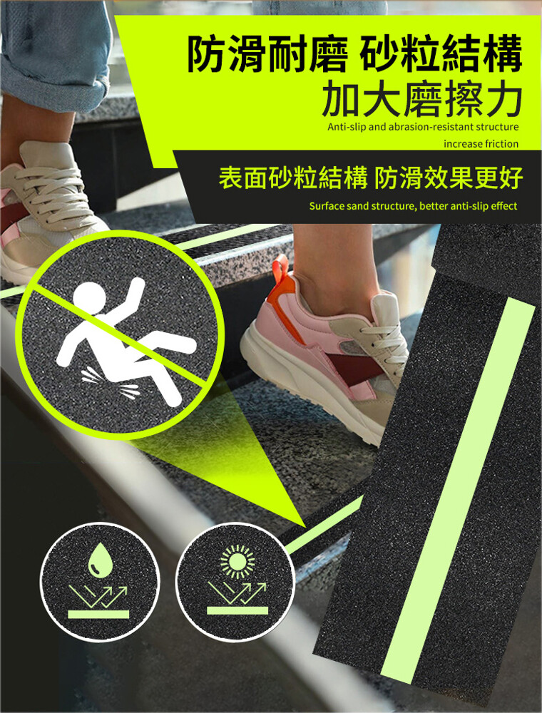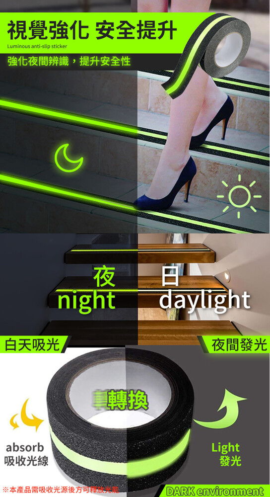 ★PVC磨砂材質 防滑耐磨 ★使用簡單可撕可剪裁 ★自黏式背膠強黏不殘膠 ★防水性佳適合多場合 ★白天吸光暗處發光安全加倍(夜光款) 款式:夜光條紋磨砂 5x500cm 商品尺寸:5x500cm 材質:金鋼砂顆粒/PVC