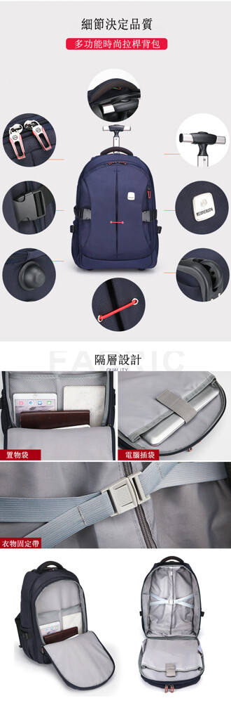 1680D防刮面料拉桿包多種背法內置肩帶可調節