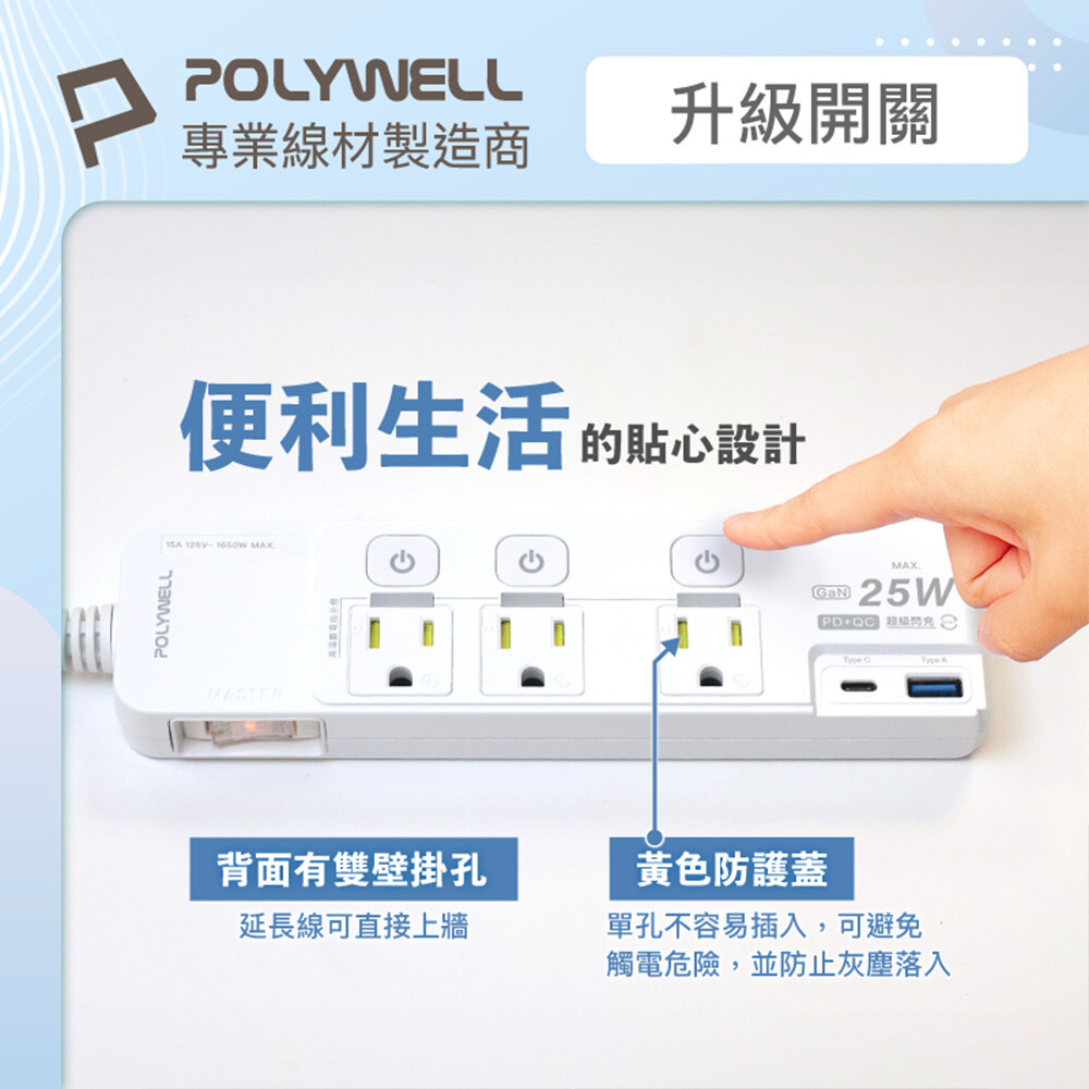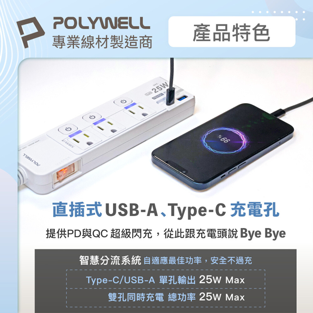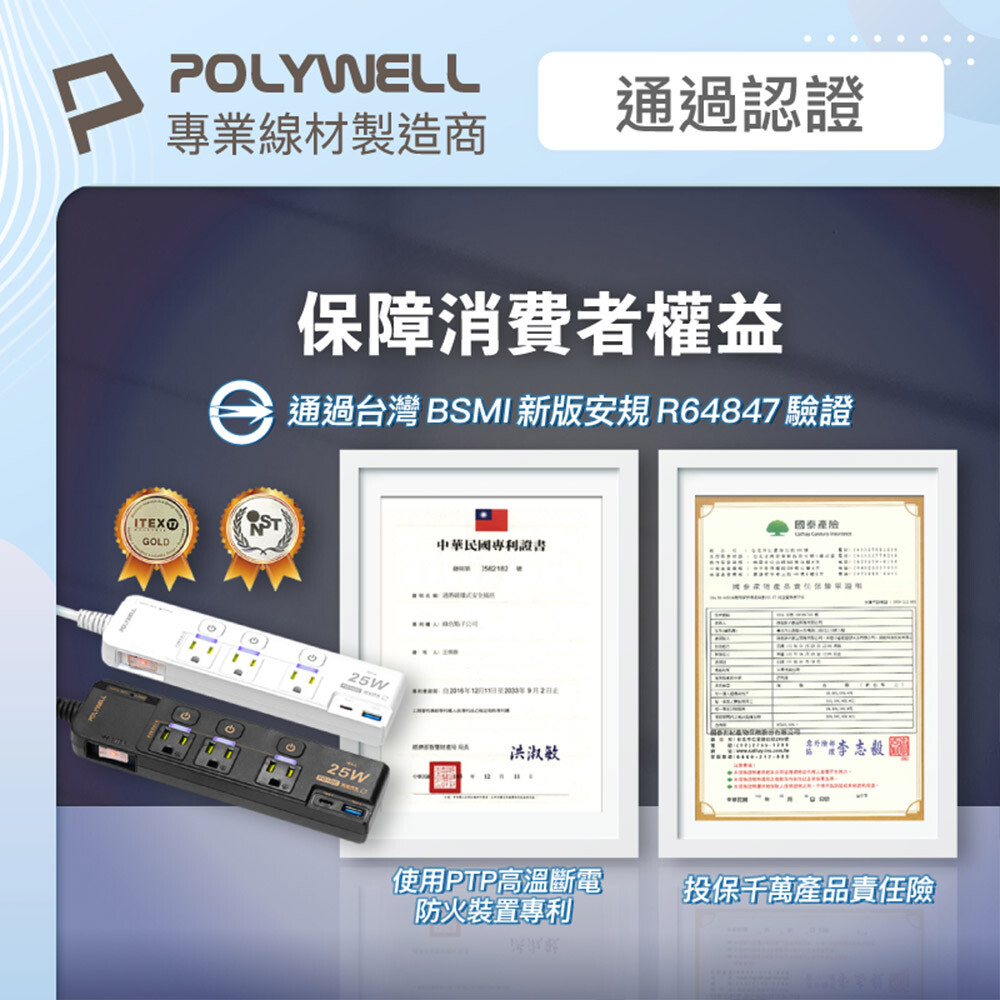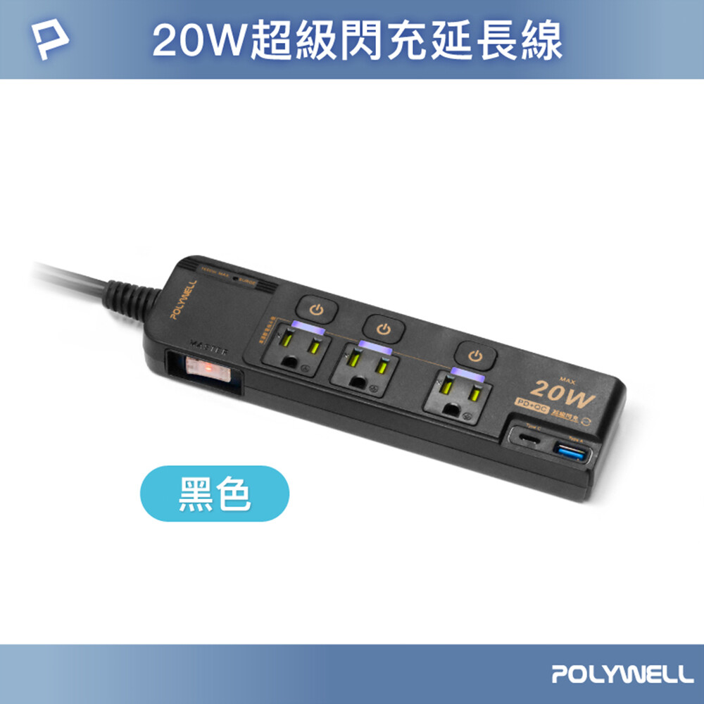 ◎ 產品: Polywell 20W PD/QC快充電源延長線