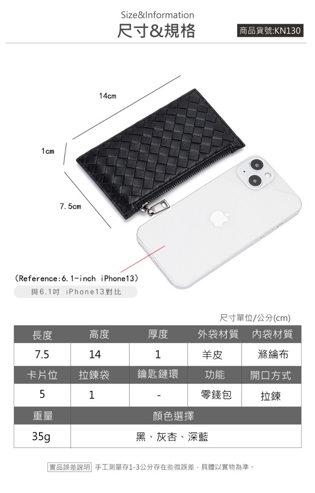 商品名稱:【喜番屋】真皮羊皮手工編織薄款卡片零錢包【KN130】