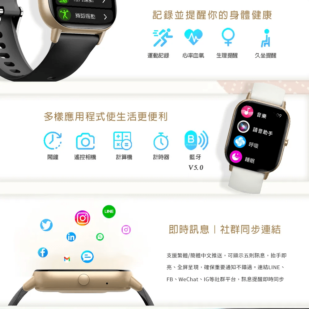 來電顯示 / 繁中訊息提醒 / APP訊息提醒 (多國語言顯示)