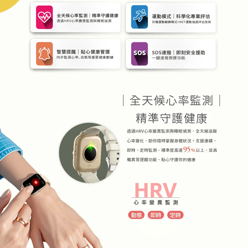 HRV心率變異,即時、定時、心率監測 (心率異常提醒),血氧濃度監測