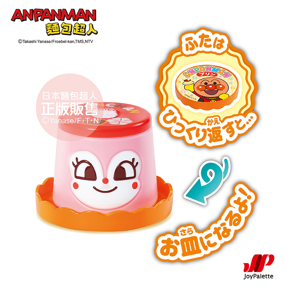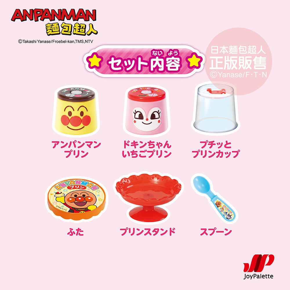 組合內容:麵包超人布丁、紅精靈草莓布丁、蓋子、透明杯、布丁盤架、湯匙