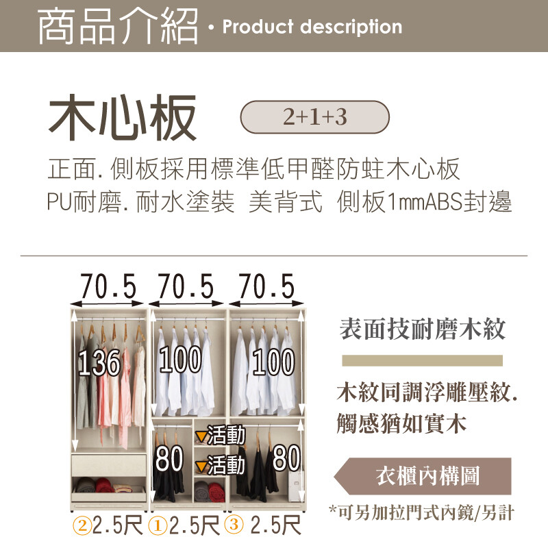 正面.側板採用標準低甲醛防蛀木心板