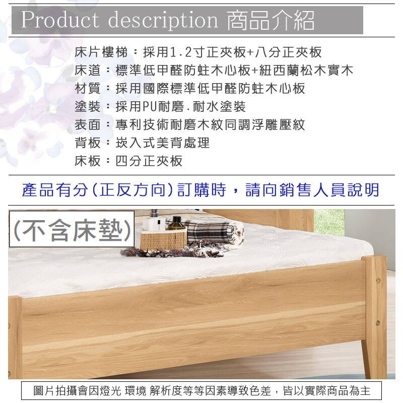 床道︰標準低甲醛防蛀木心板+紐西蘭松木實木