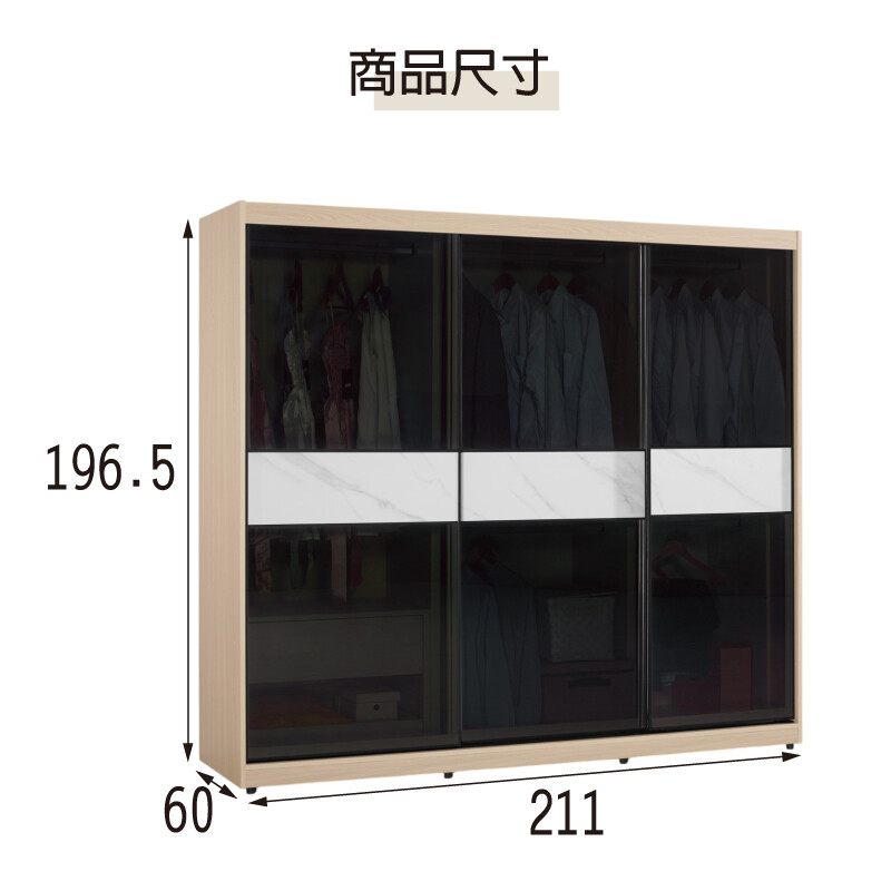 門片鋁框+5mm黑強化玻璃+6mm岩板