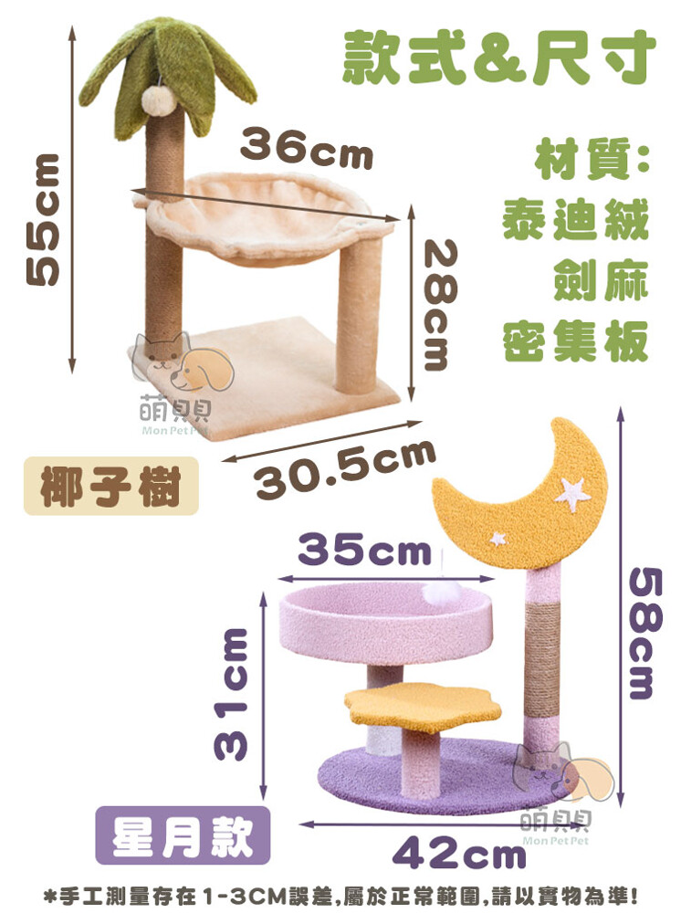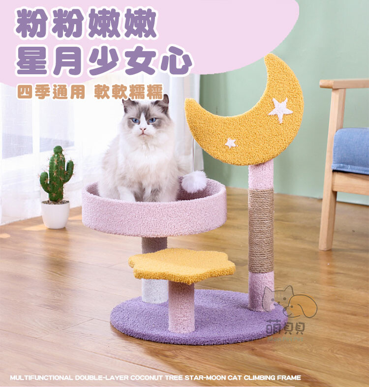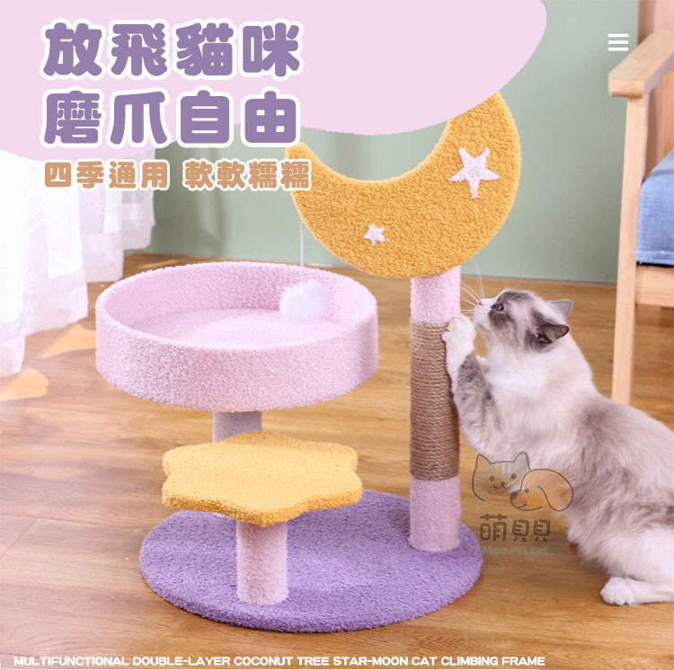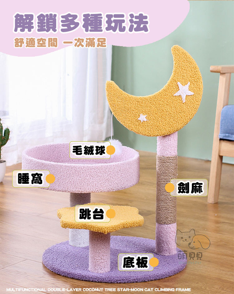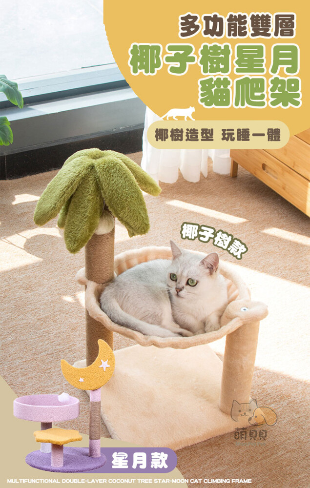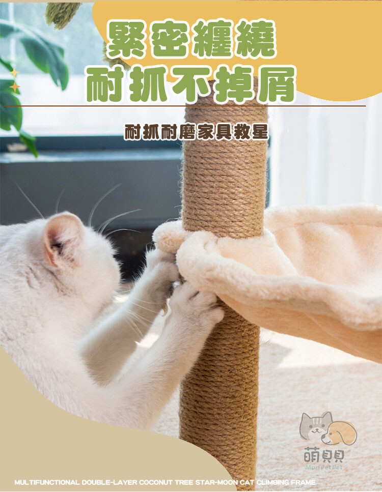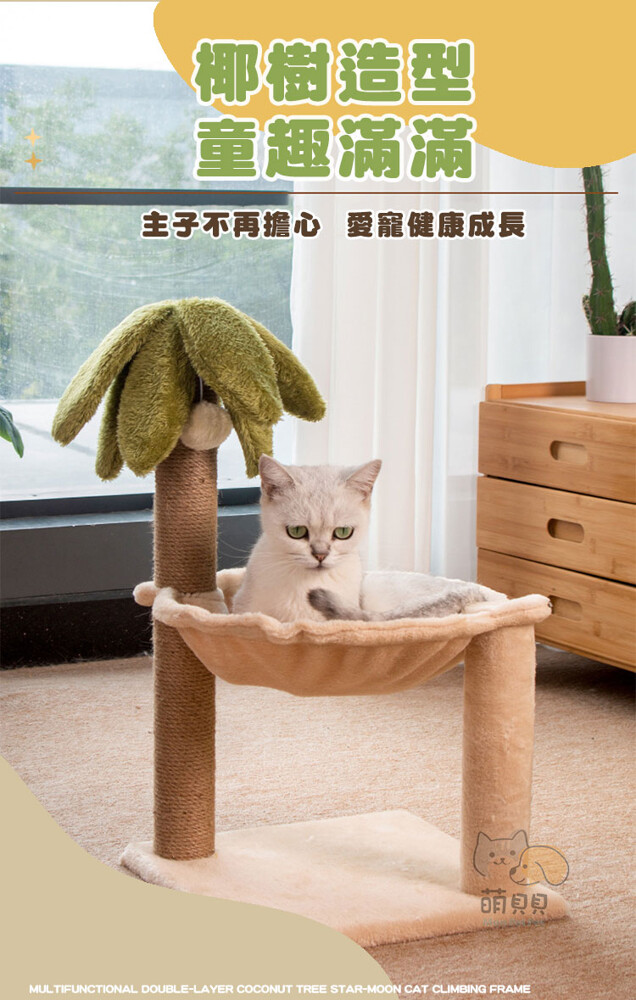 多功能雙層椰子樹星月貓爬架 貓抓柱 劍麻貓跳台 貓窩 貓床 貓玩具 貓窩 貓床 貓咪磨爪