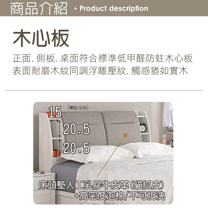 床頭墊採用人工乳膠牛皮革(貓抓皮)