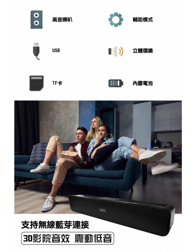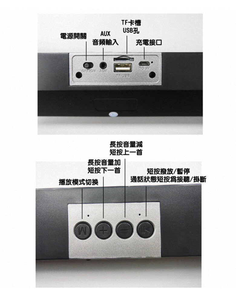 支援藍芽撥放/FM收音機/AUX有線輸入