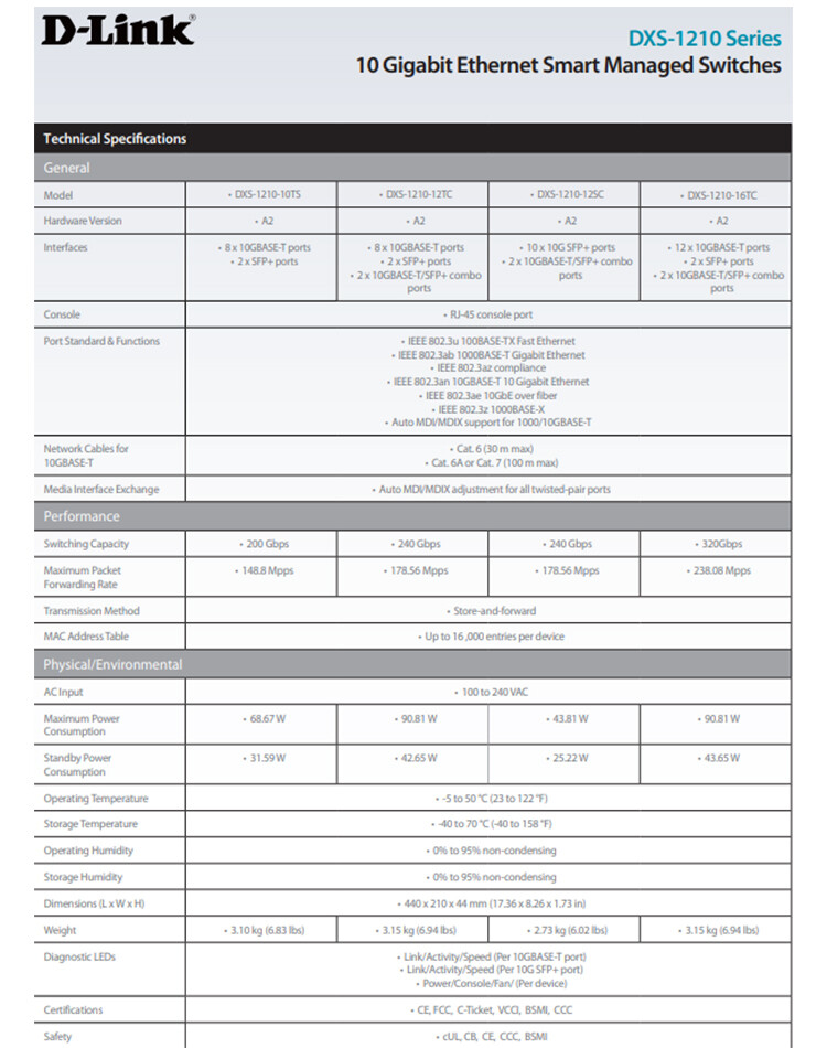 -10個SFP+連接埠及2埠 combo 10GBASE-T/SFP+。