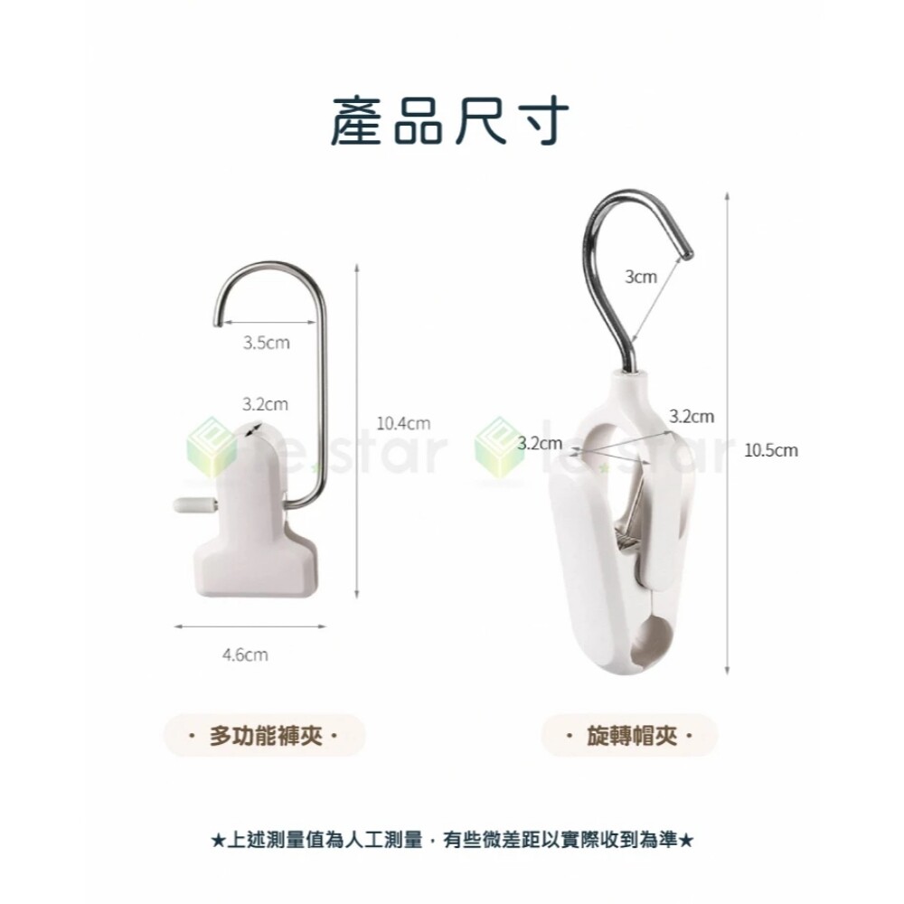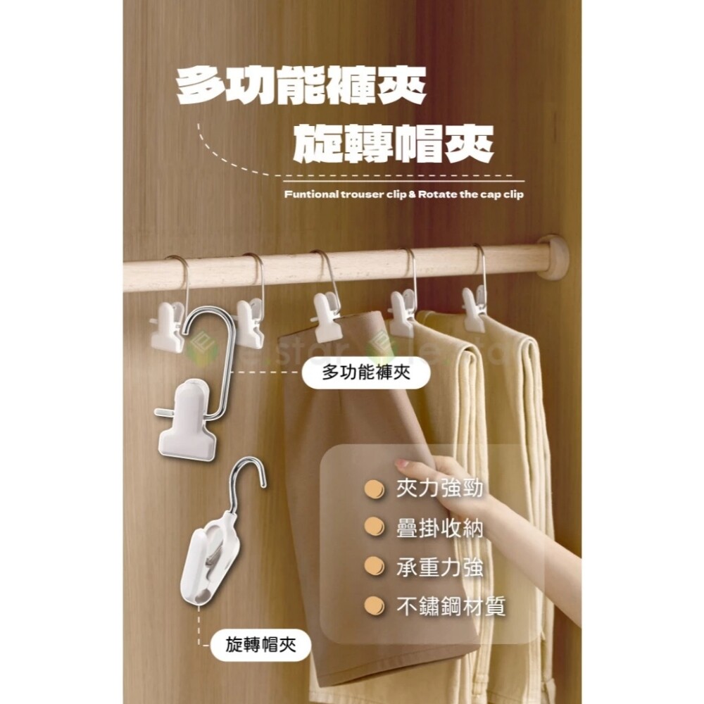 品名:多功能褲夾2入、旋轉帽夾組2入