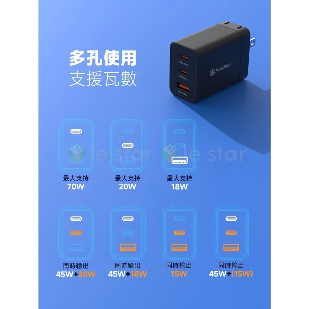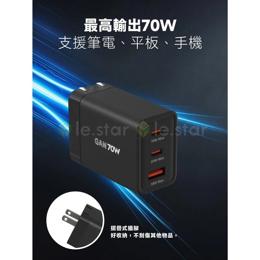 品名:70W-GaN氮化鎵超快速充電器 (3孔2C1A)