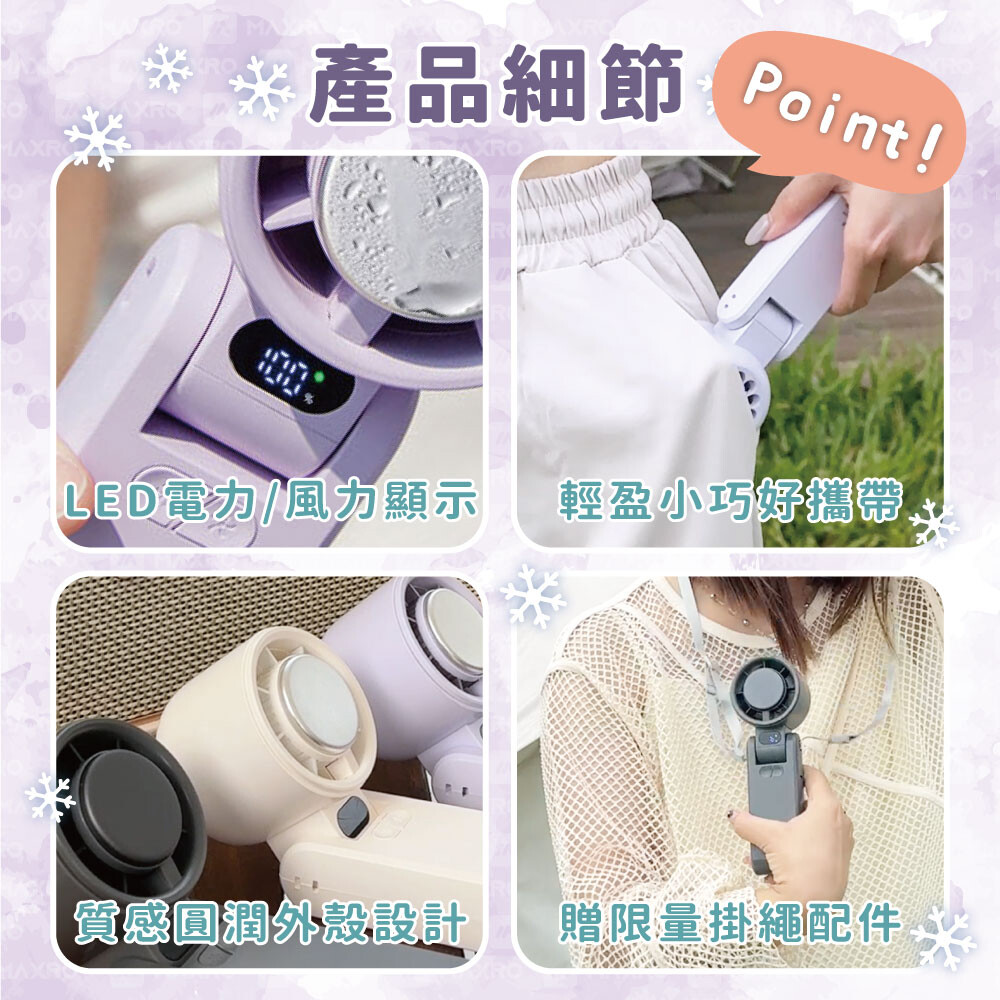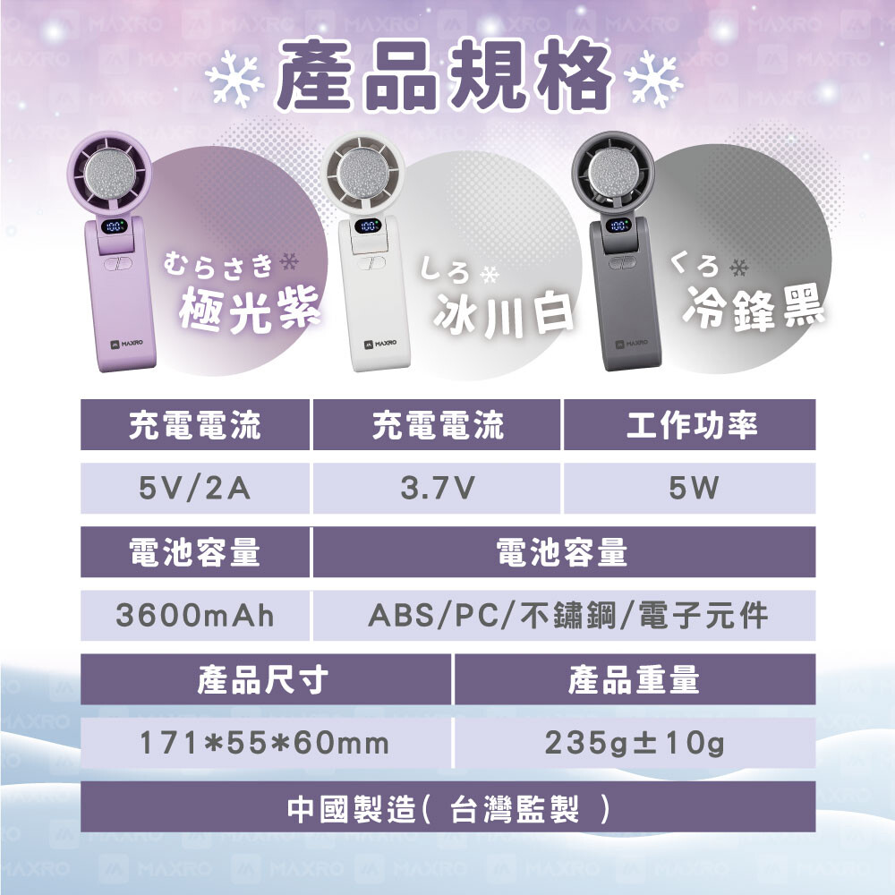 【MAXRO】 摺疊手持製冷風扇(極光紫/冰川白/冷峰黑)