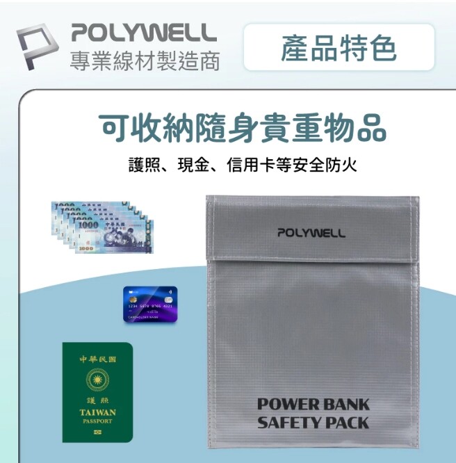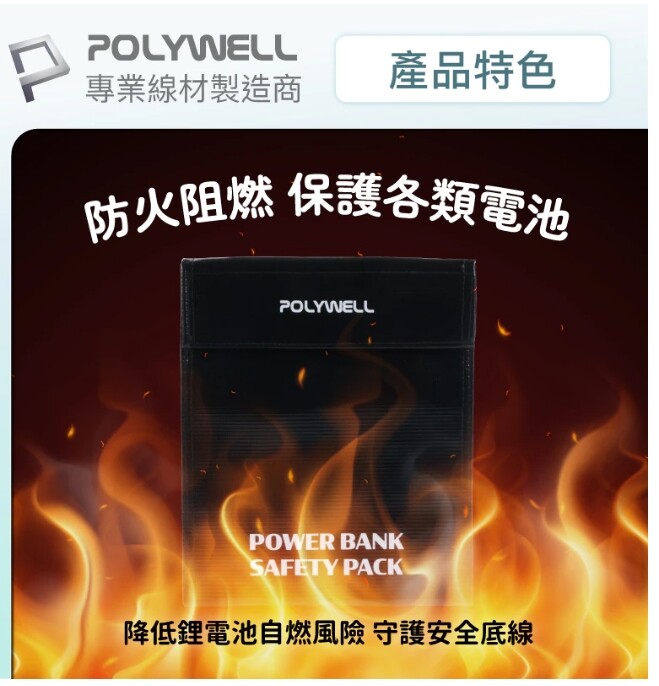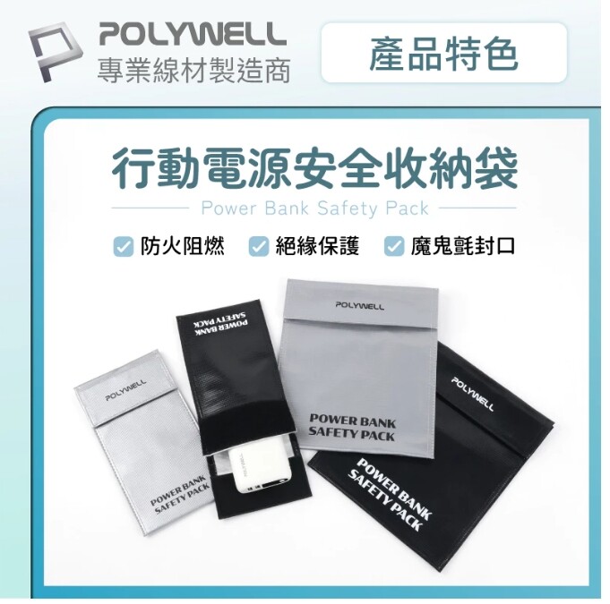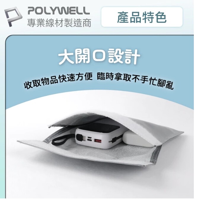 ◎ 產品:POLYWELL 行動電源安全收納袋