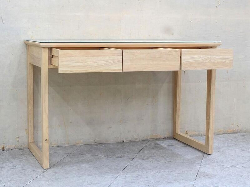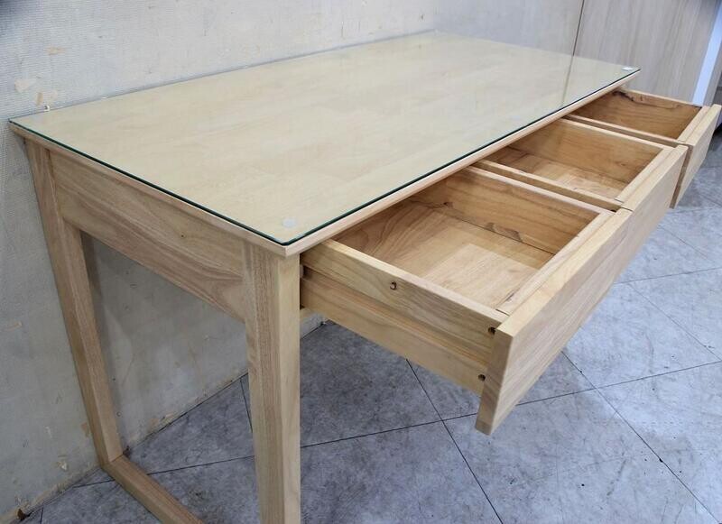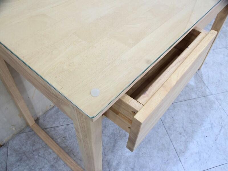 | 材質 | 板材 : 全組橡木實木材質,質地堅硬 塗裝 : 原木色噴漆倒角做工質感細緻,桌下緣斜角處理,美背設計 五金 : 內建三抽採木製滑軌,桌面附5mm強化玻璃 |