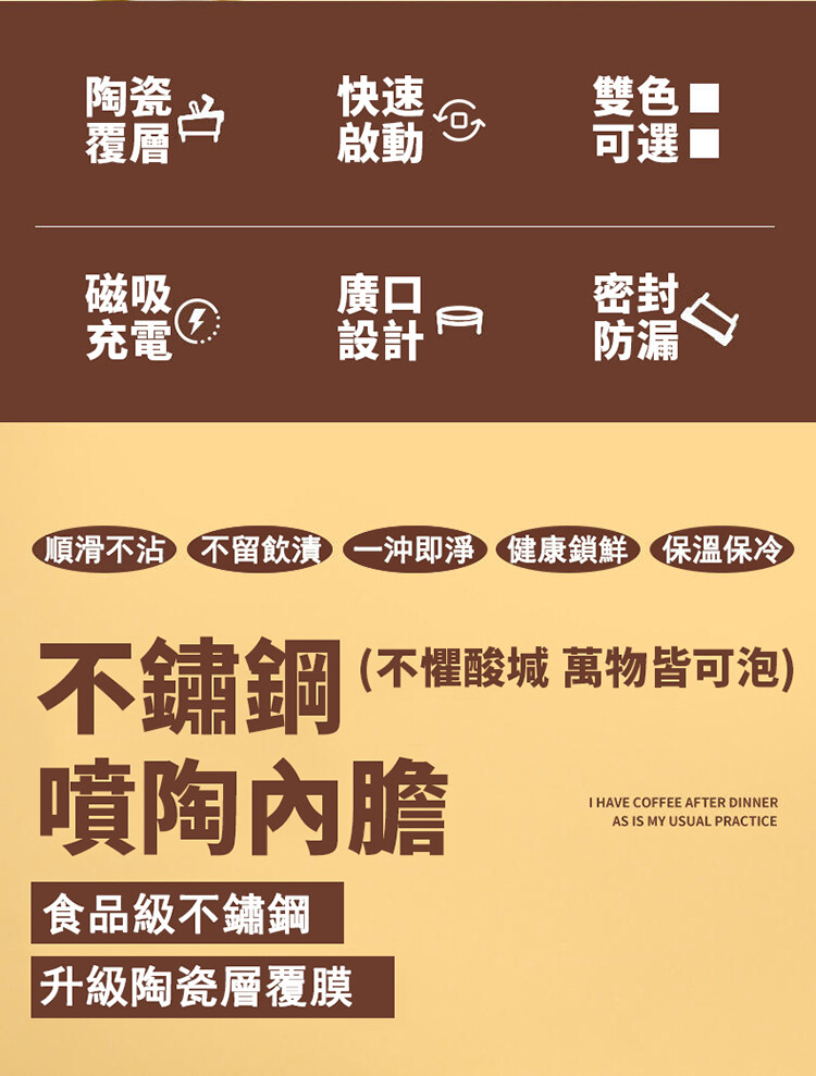 溫差磁力全自動充電式攪拌杯 (陶瓷內膽)