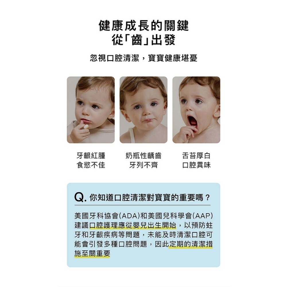 1.本產品僅供清潔嬰幼兒口腔,請勿使用於其他用途
