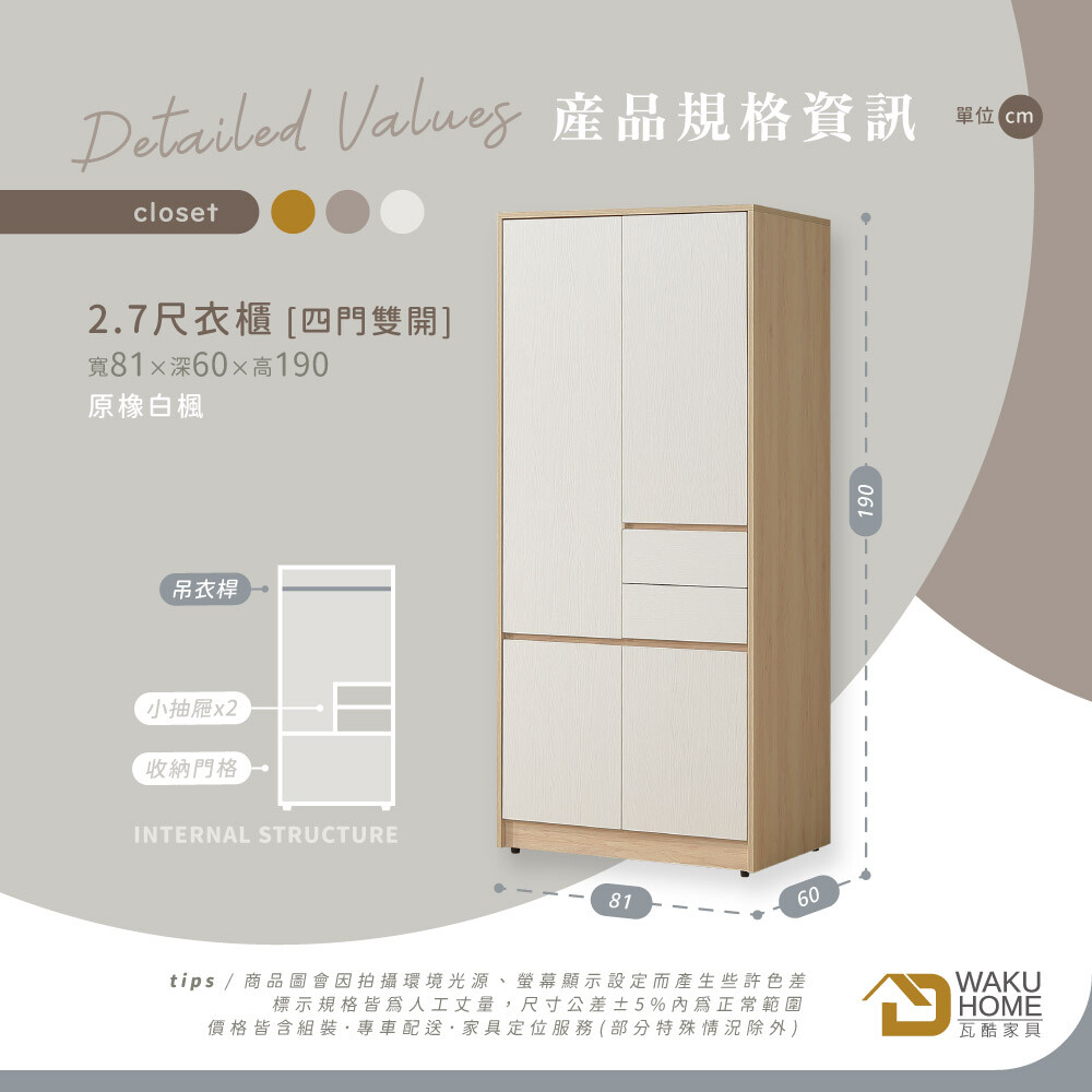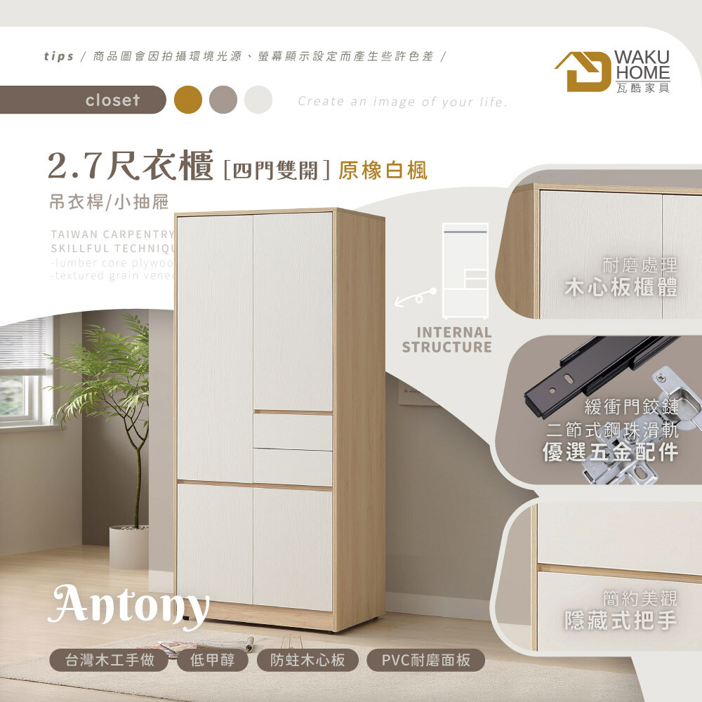 Antony極簡北歐風白楓木2.7尺衣櫃(四門雙開設計)A024-S687