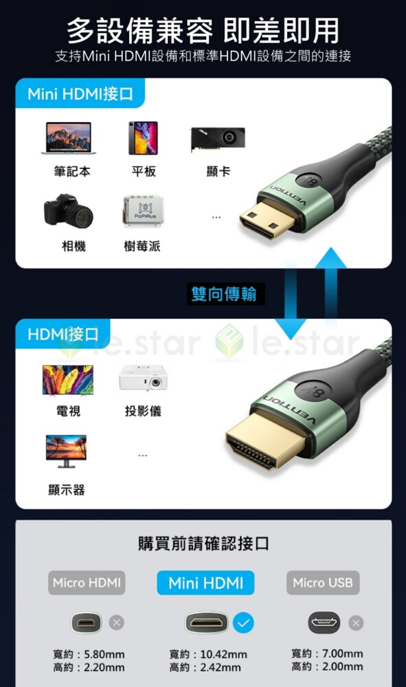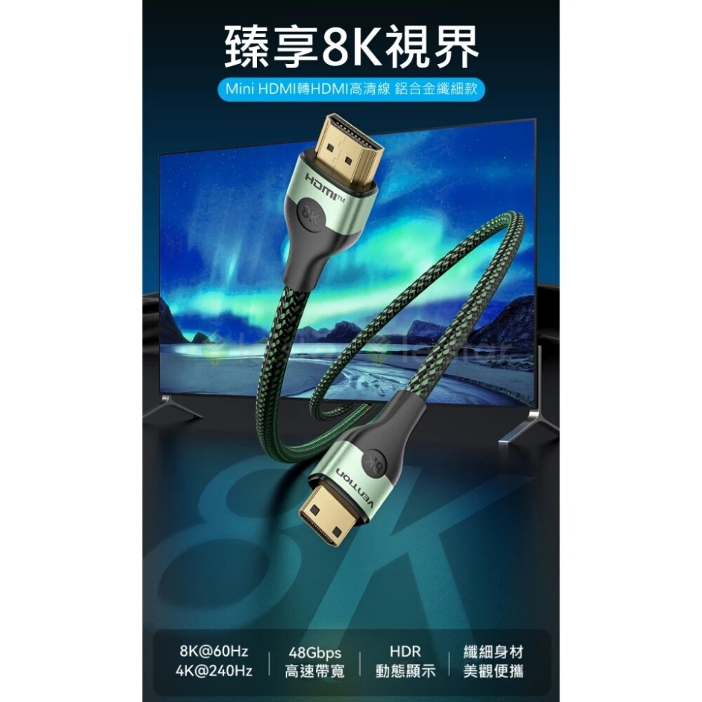 VENTION 威迅 AGJ系列HDMI-C公對HDMI-A公8K高清傳輸線 2M-綠色