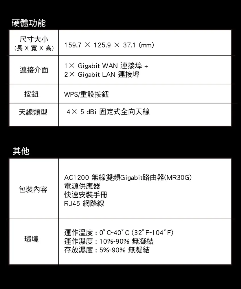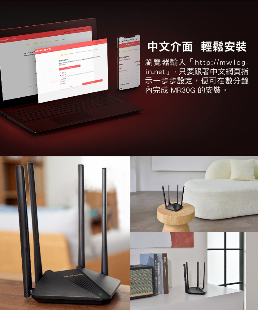 水星網路 MR30G AC1200 雙頻 WiFi 網路路由器