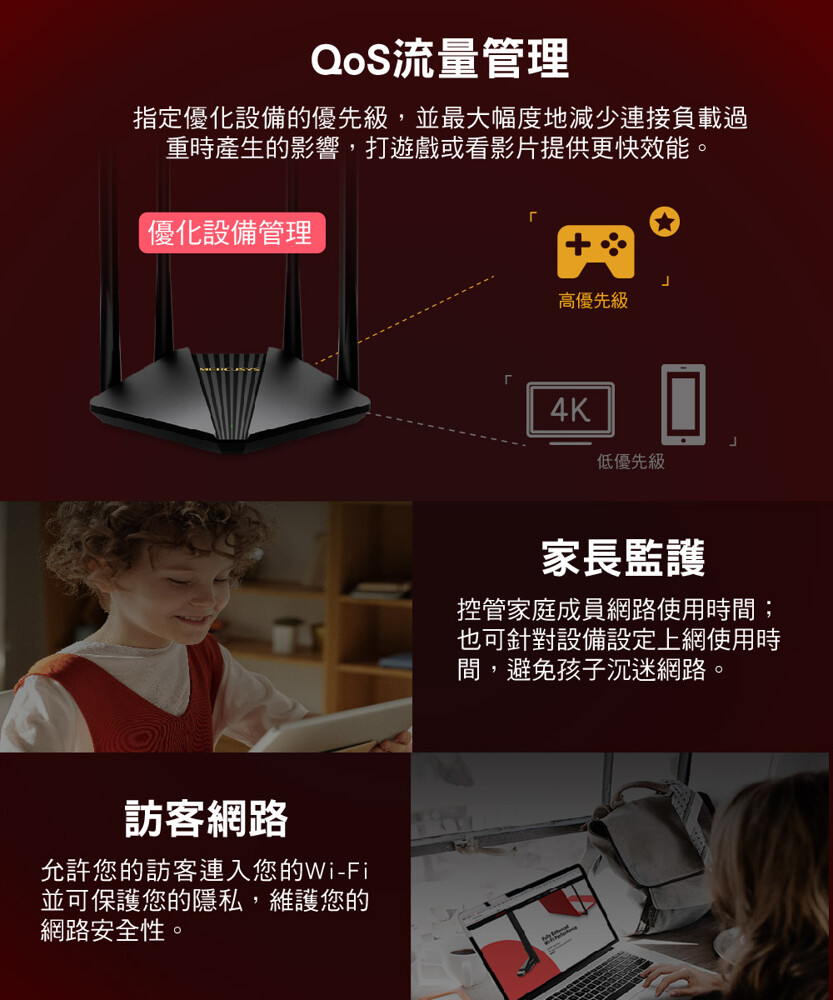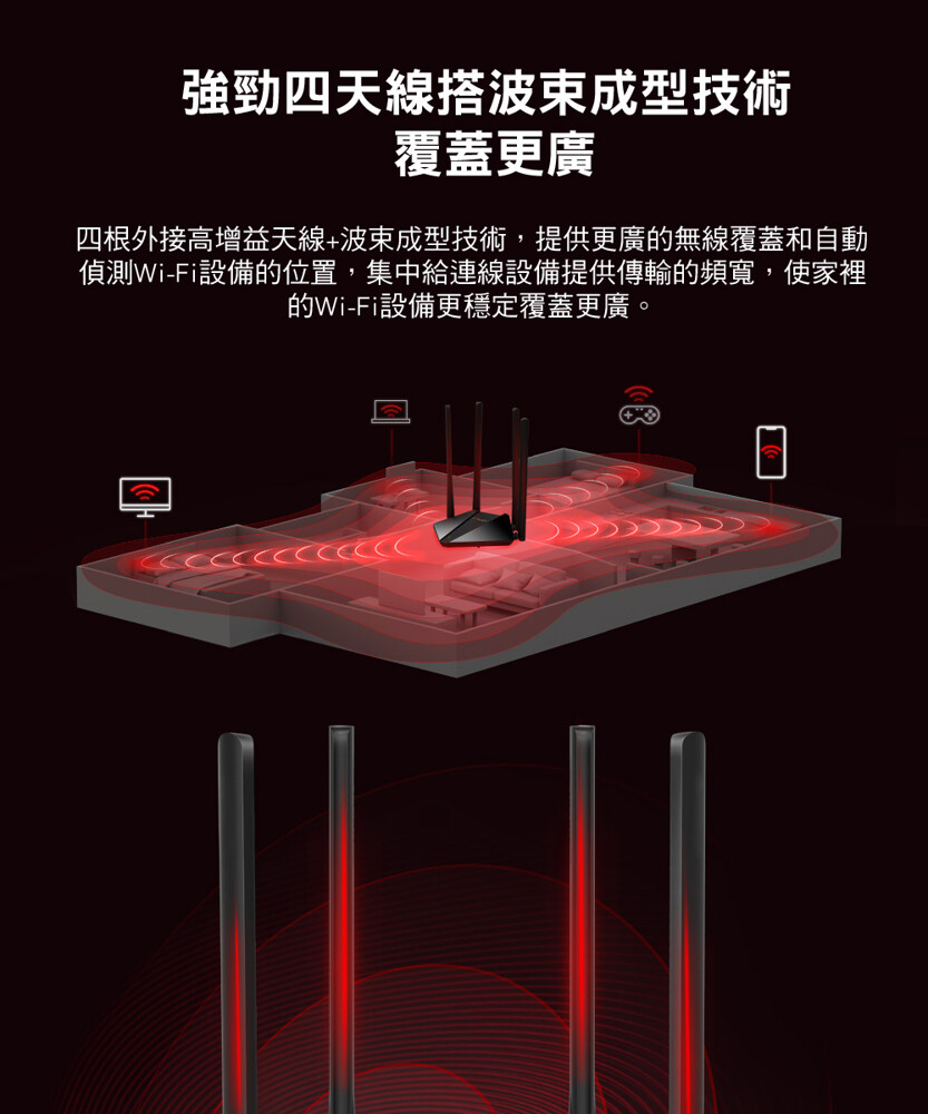 4x外接高增益天線+波束成型技術,擴大訊號覆蓋面積