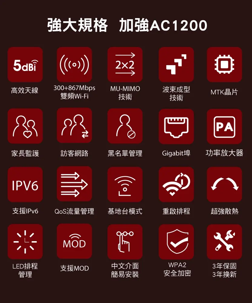 1200Mbps的速度,雙頻訊號,提供最佳的網路效能