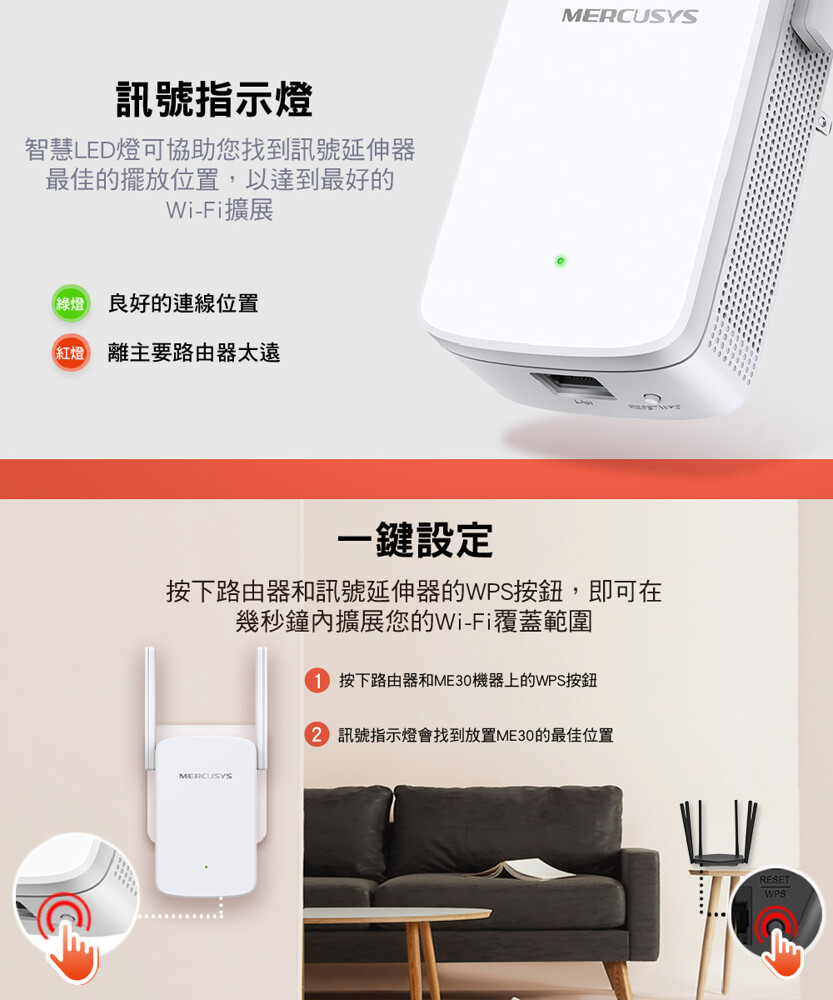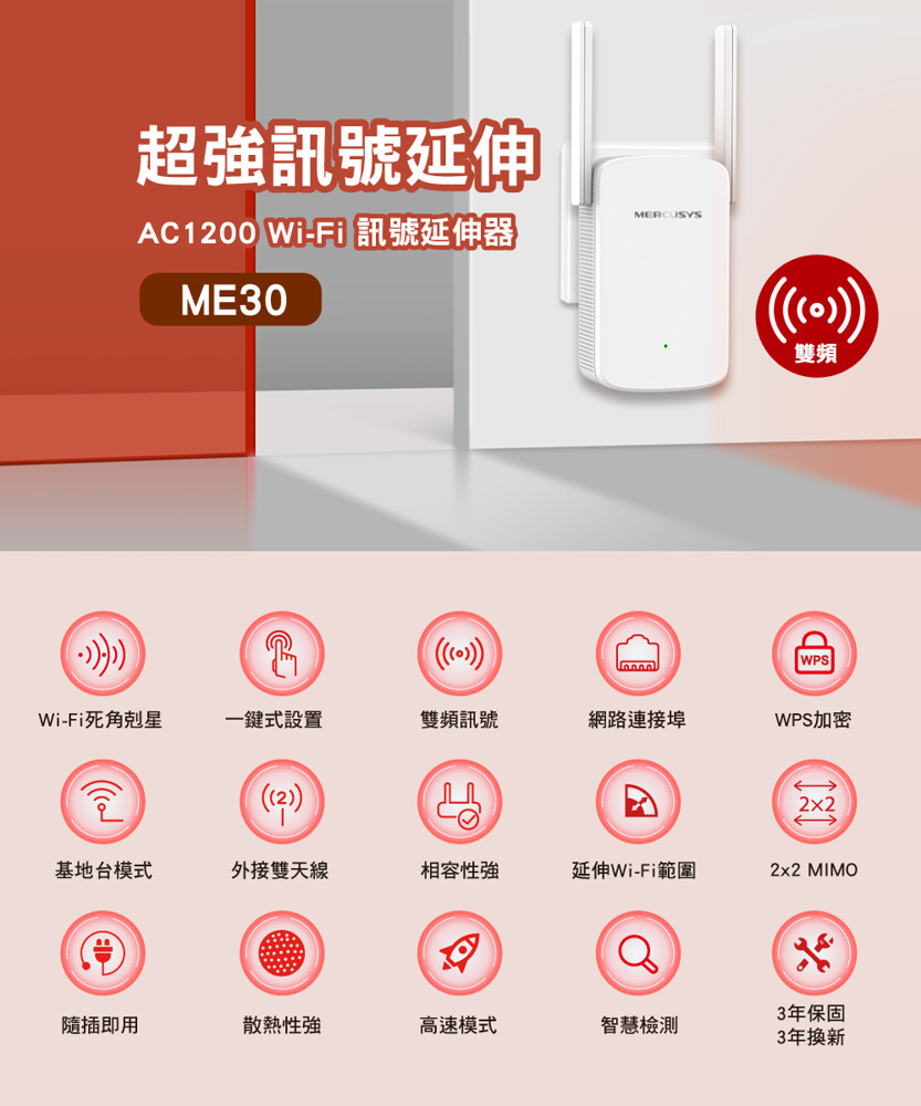 ME30 AC1200 雙頻無線 WiFi 訊號延伸器(Wi-Fi 中繼器)