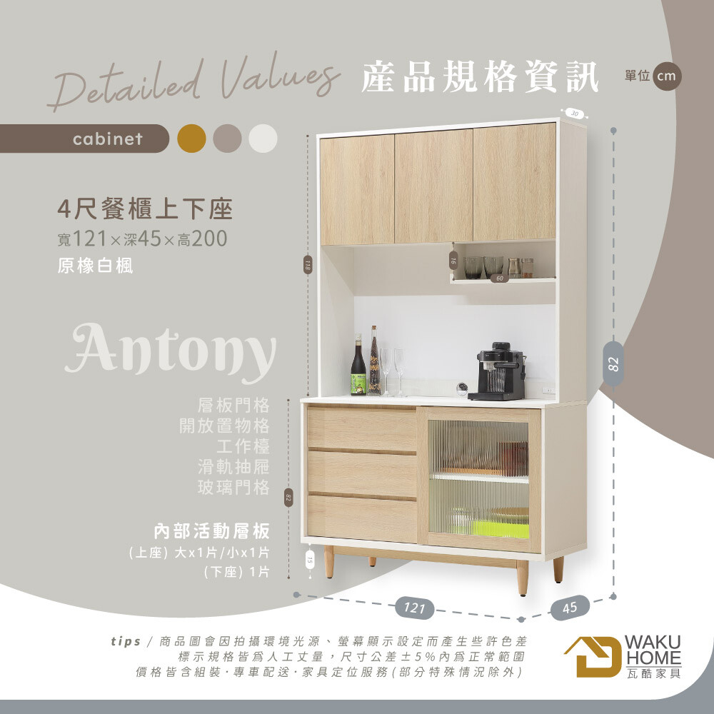Antony極簡北歐風白楓木4尺餐櫃組合A024-S671+672