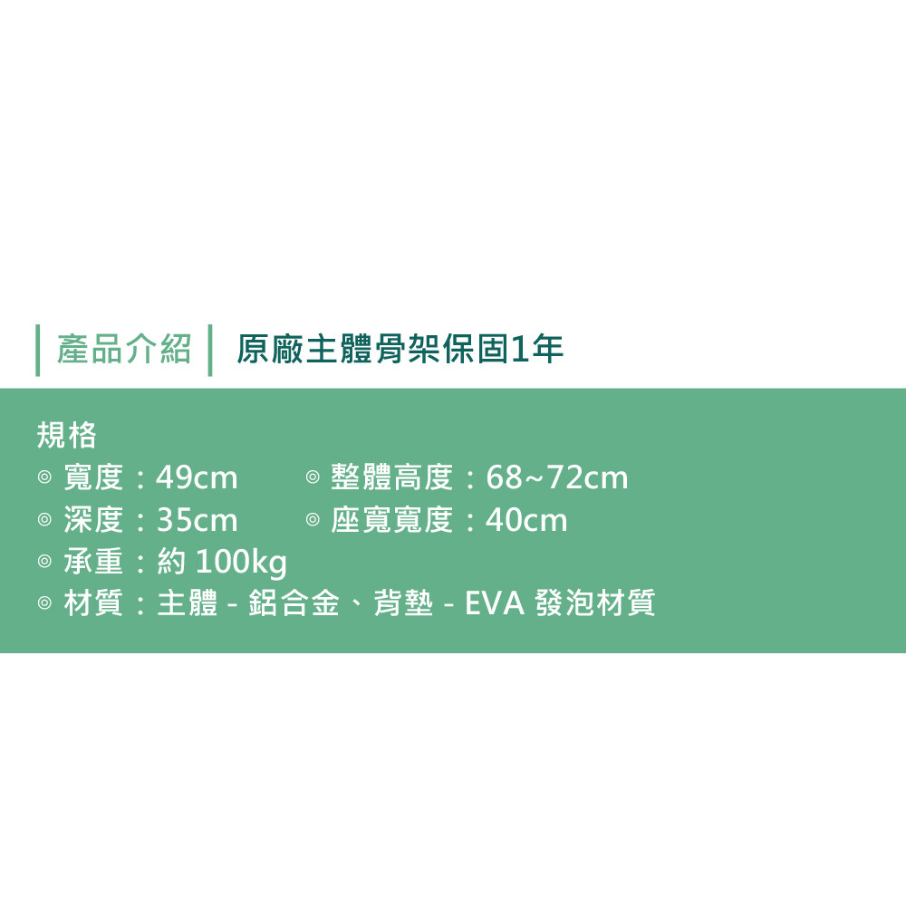 ◎ 材質:主體-鋁合金、背墊- EVA發泡材質