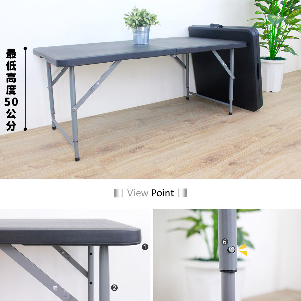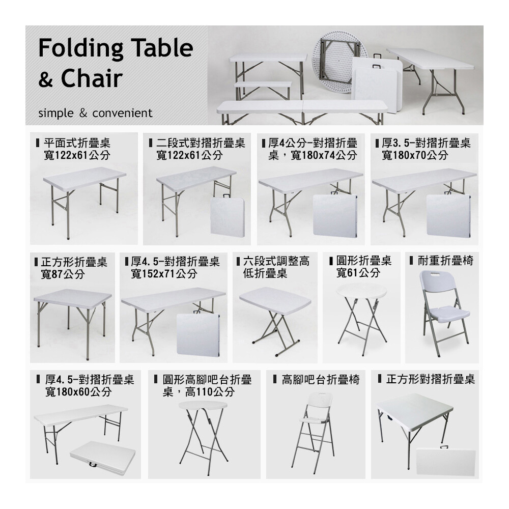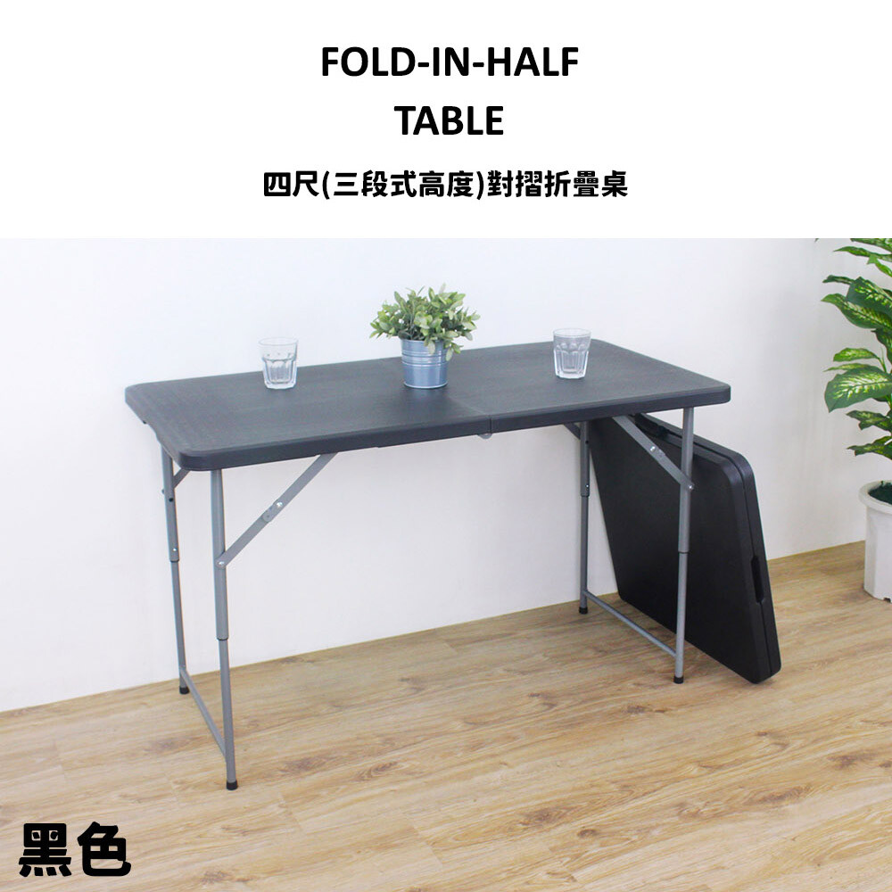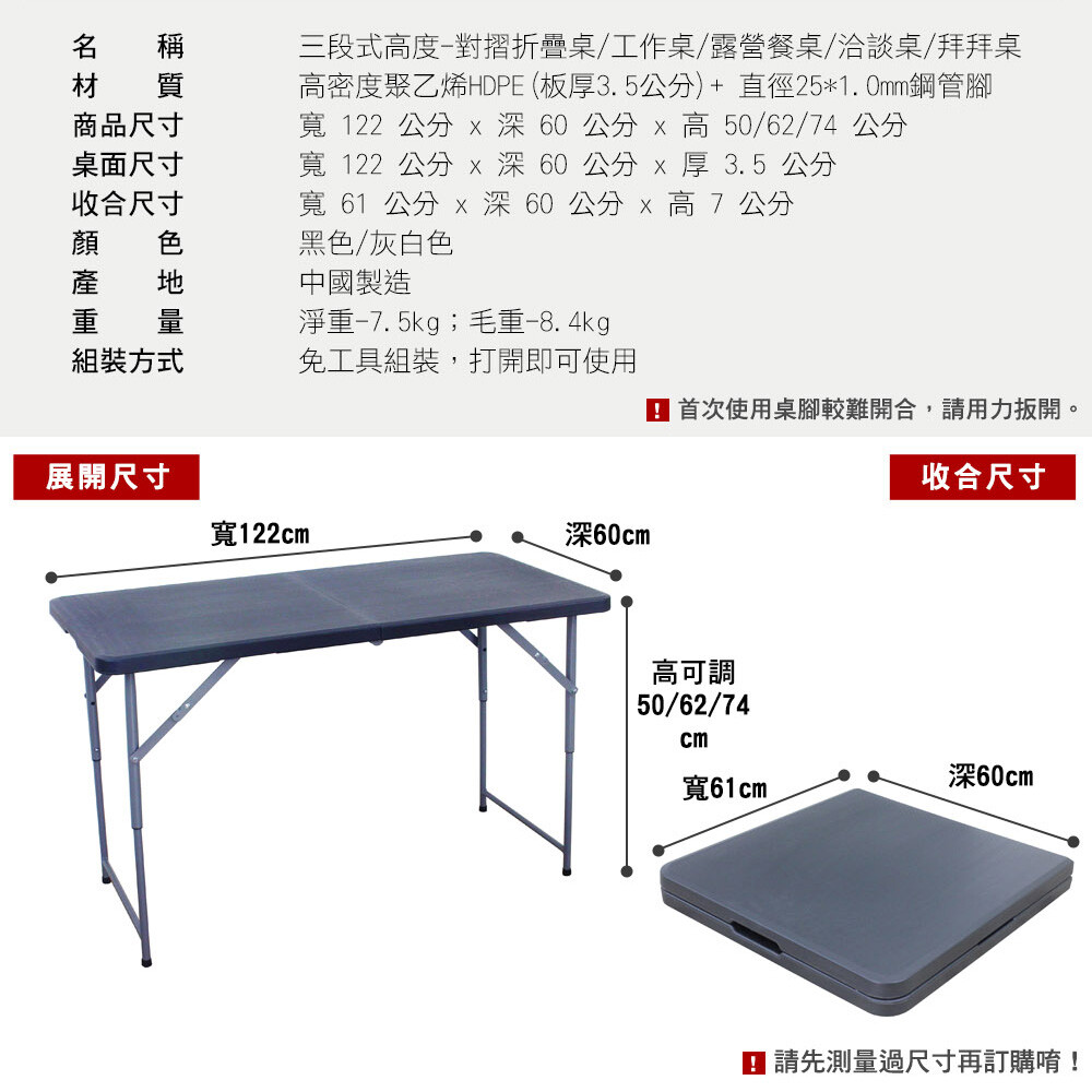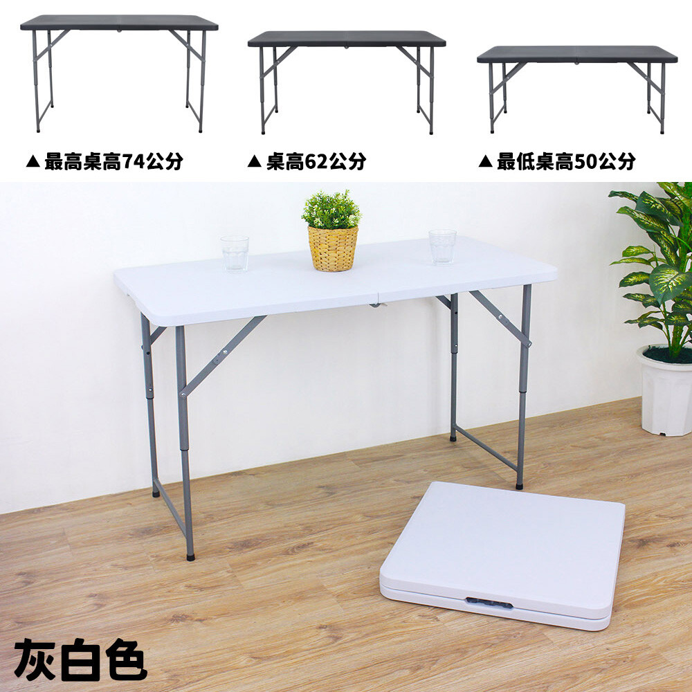 【愛家】122公分(三段式可調整高度)對摺折疊桌/餐桌/露營桌/擺攤桌/拜拜桌(二色可選)
