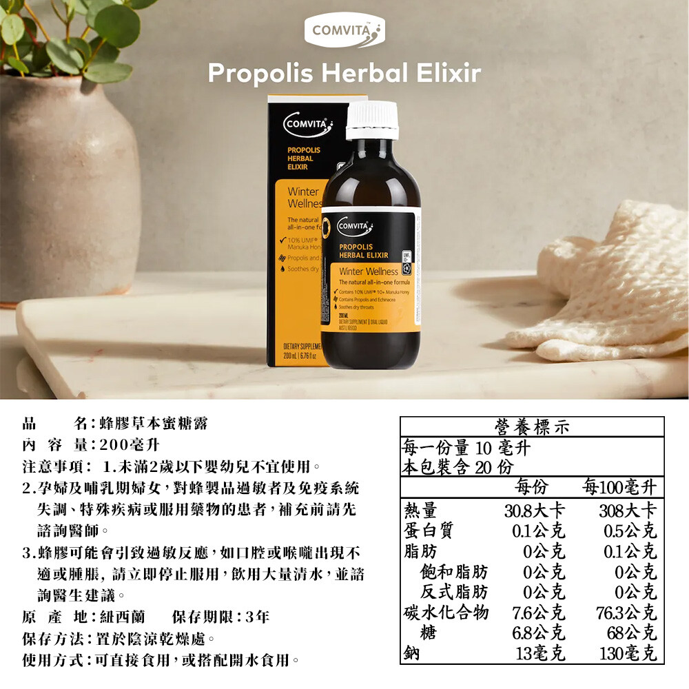 紐西蘭Comvita蜂膠草本蜜糖露 200ml