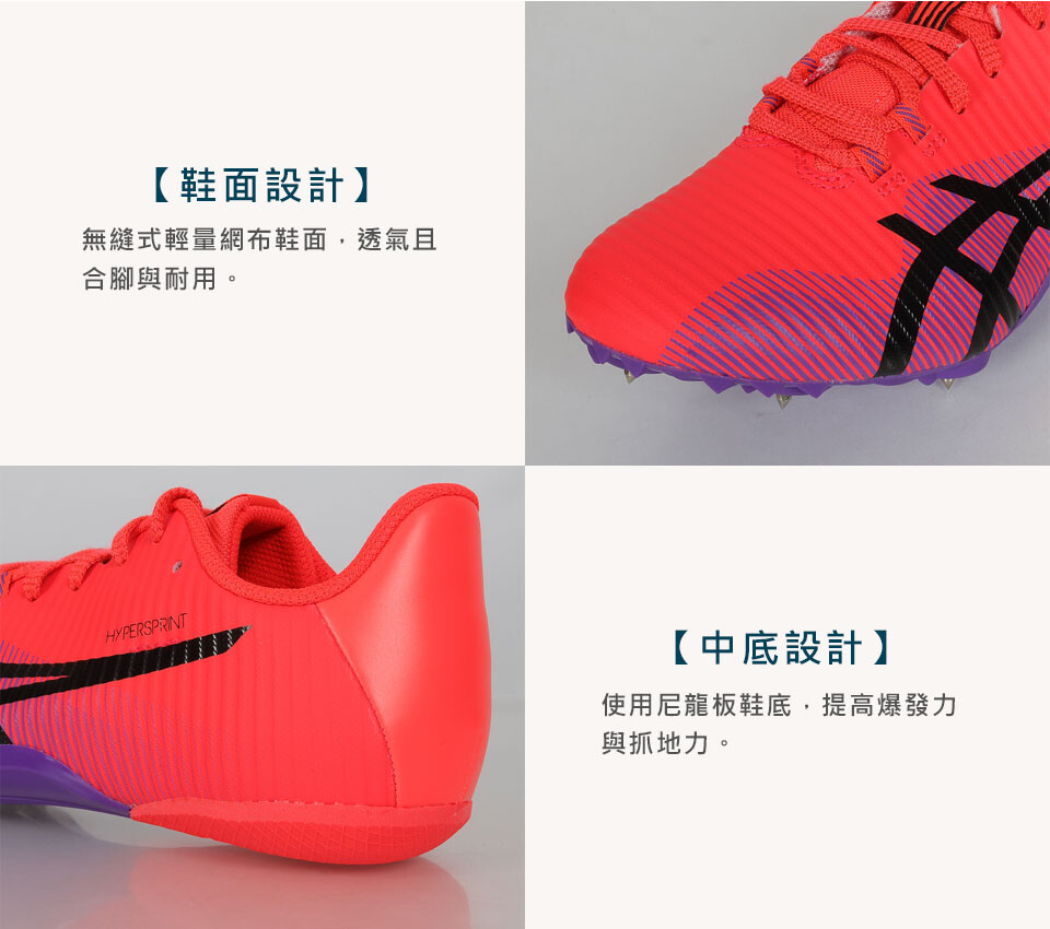 ASICS HYPERSPRINT 8 男女田徑釘鞋-短距離 訓練 亞瑟士 螢光紅紫黑