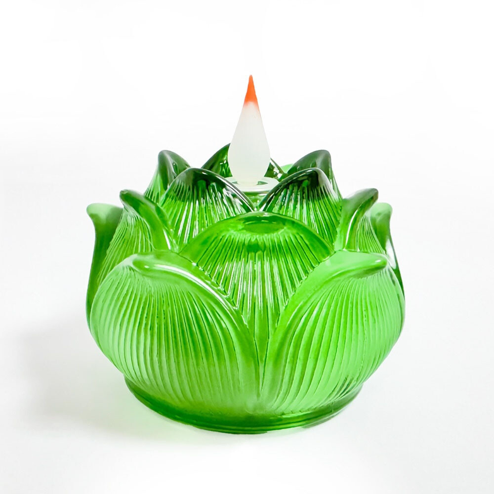產品尺寸:蓮花燈底部寬 7.5公分 x 含燭芯高9 公分(燭芯高3公分)花身最寬 9公分
