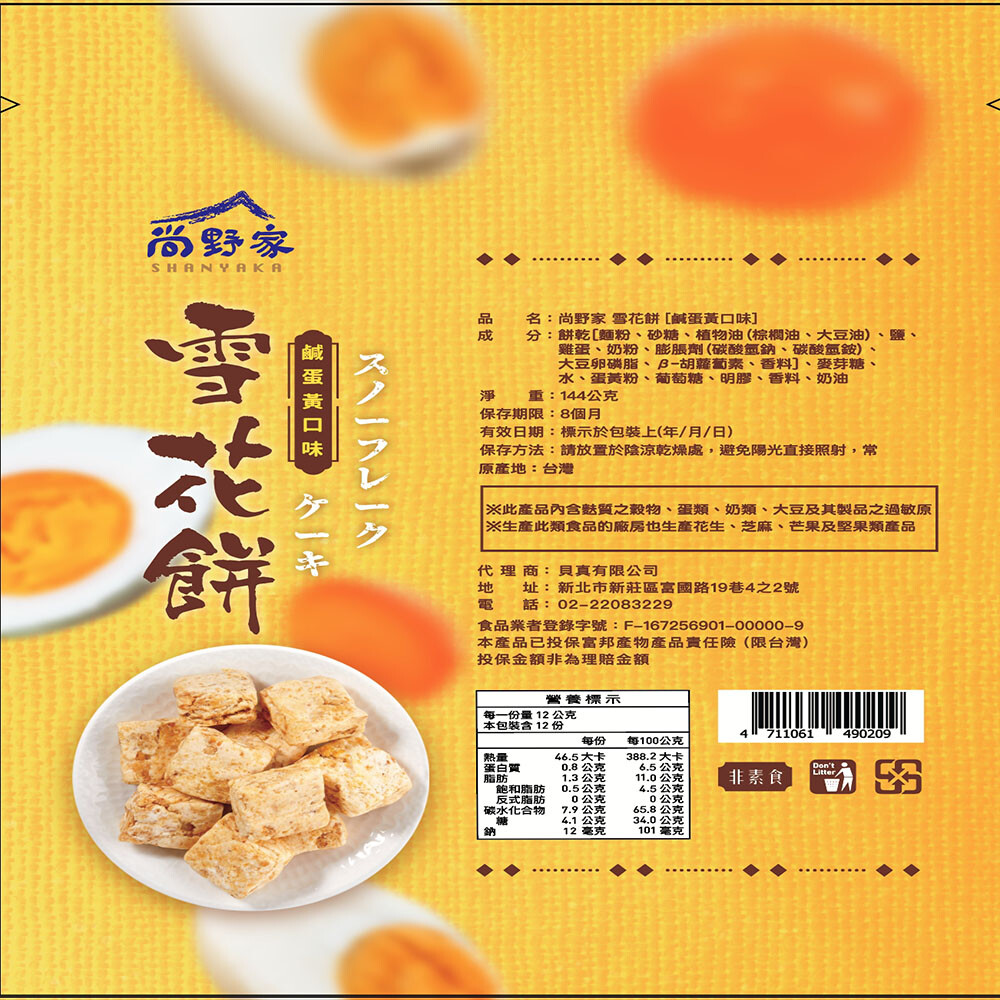 品名:尚野家 雪花餅(鹹蛋黃口味)