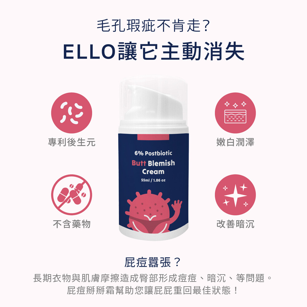 【1010SHOP】ELLO研舒肌 益生菌 屁痘 掰掰霜 身體痘痘 琥珀酸 臀部保養 55ml