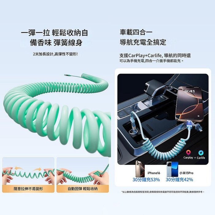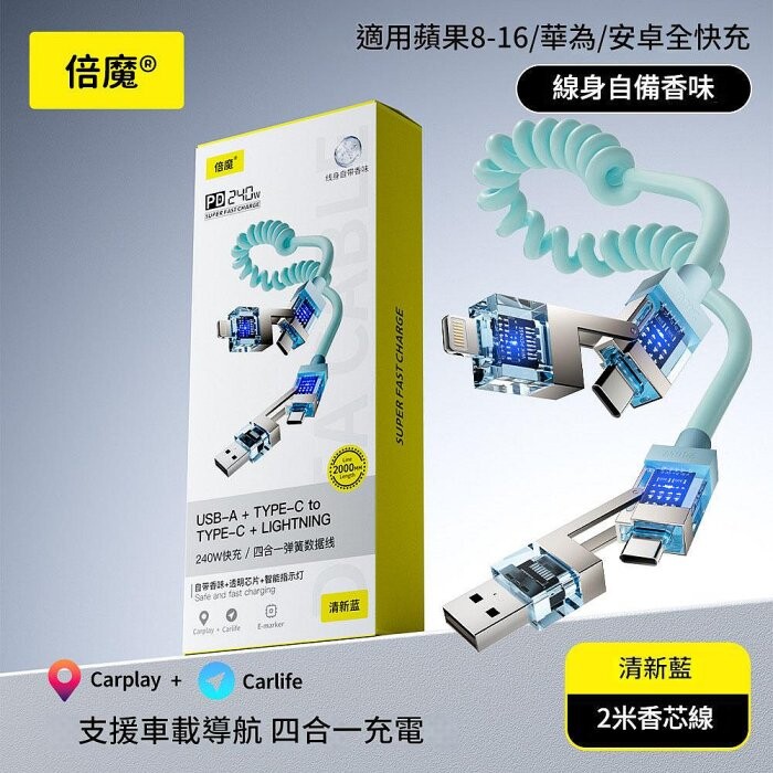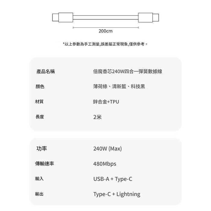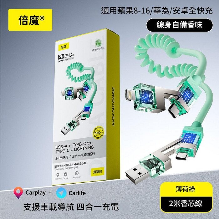 產品名稱:倍魔精芯240W四合一彈簧數據線