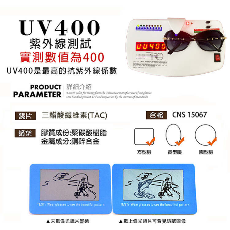 100%抗紫外線UV400品質有保證。