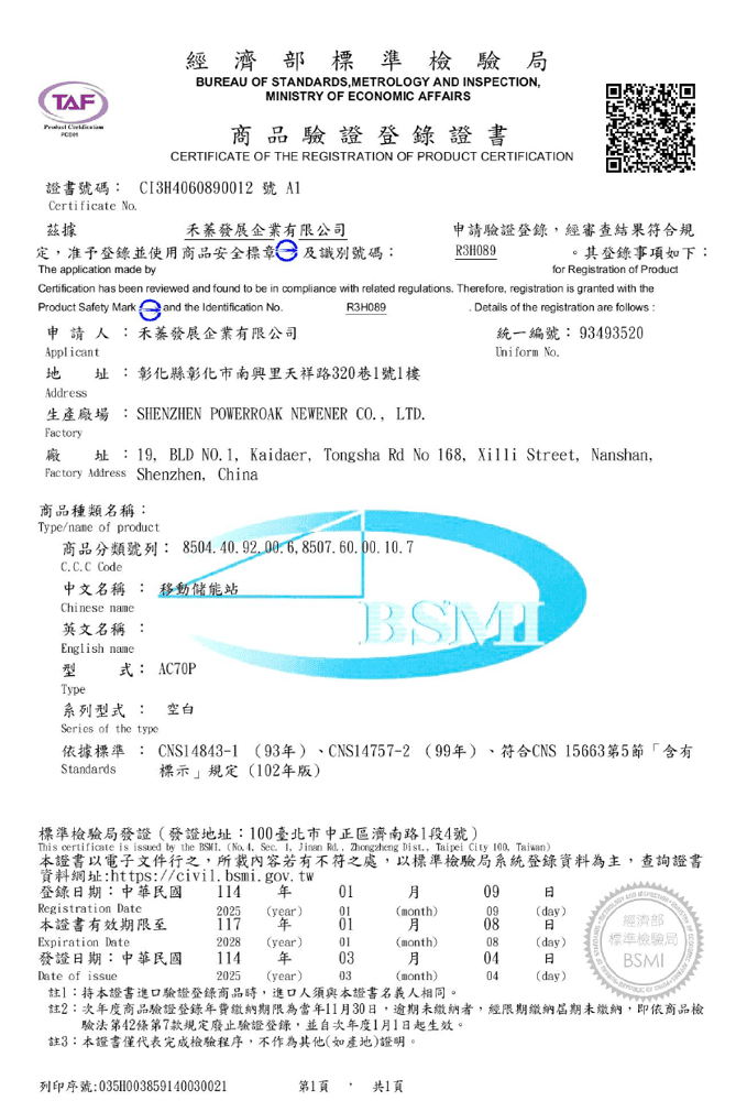 AC70P Premium 鉑金版 移動式電源 規格 :