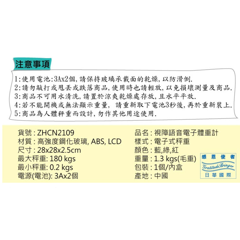來而康 日華 感恩使者 視障語音體重計 ZHCN2109 視障 語音播放 重量 體重計 體重機 電子
