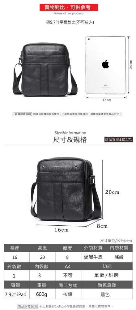 商品名稱:【喜番屋】真皮頭層牛皮中小型豎款肩背包斜揹包小包男包【LB1171】