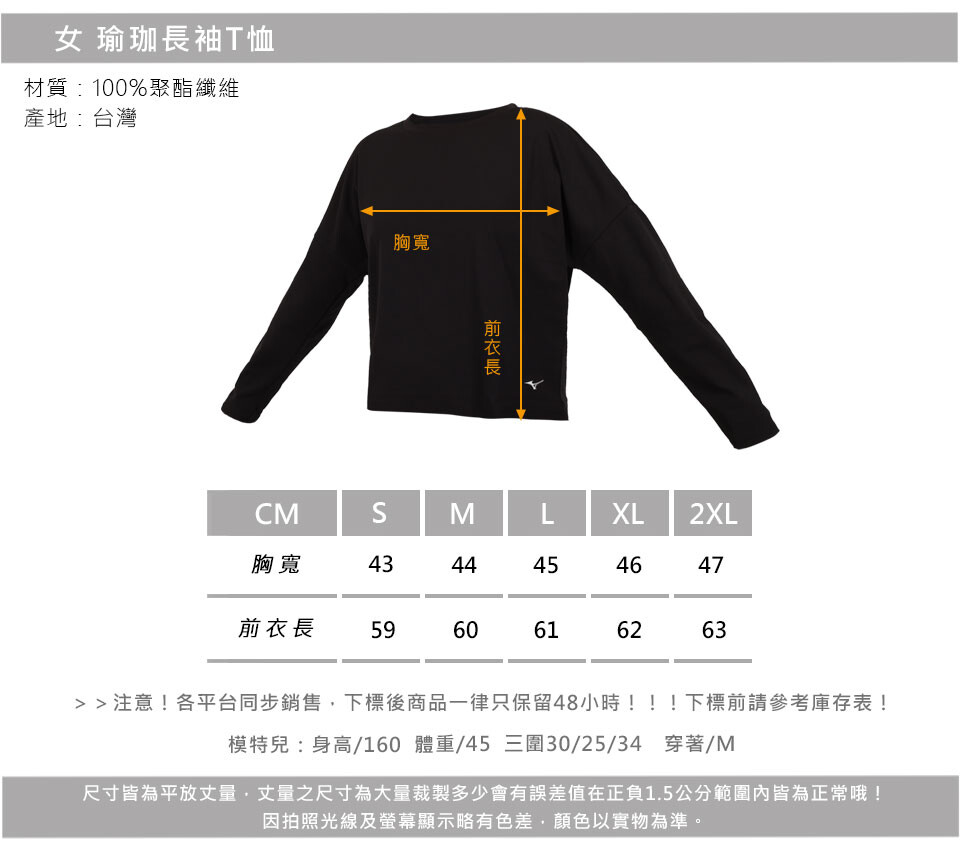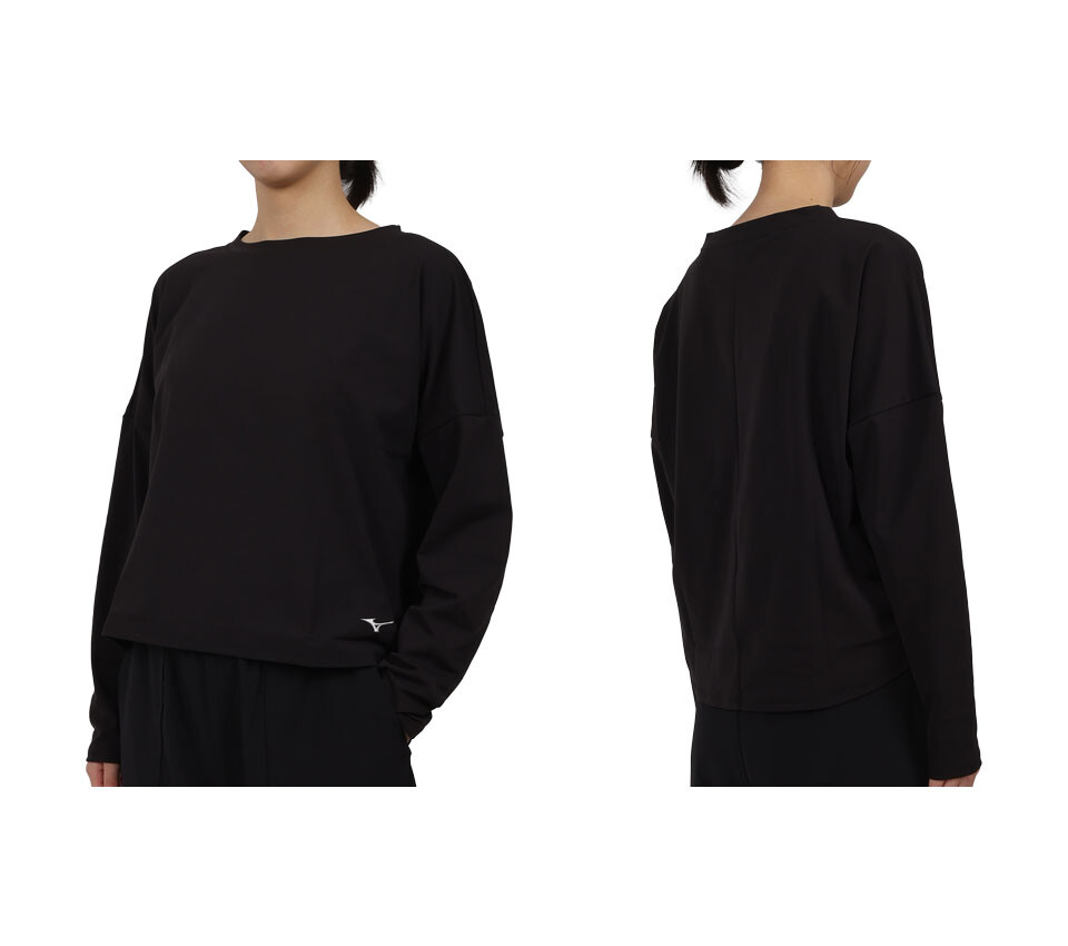 MIZUNO 女瑜珈長袖T恤-台灣製 上衣 休閒 慢跑 黑白