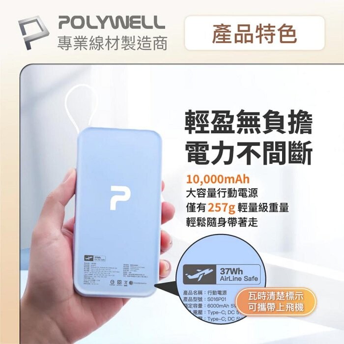 - 電芯容量:10000mAh 3.7V (37Wh)