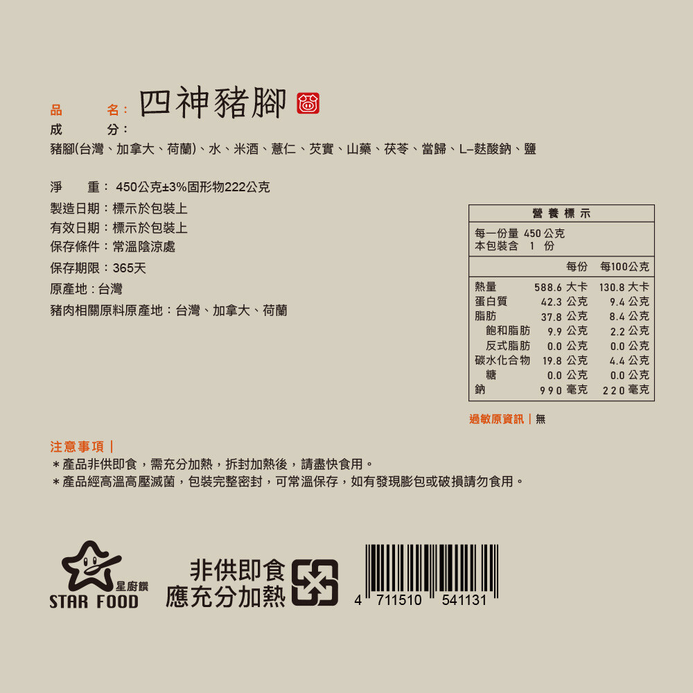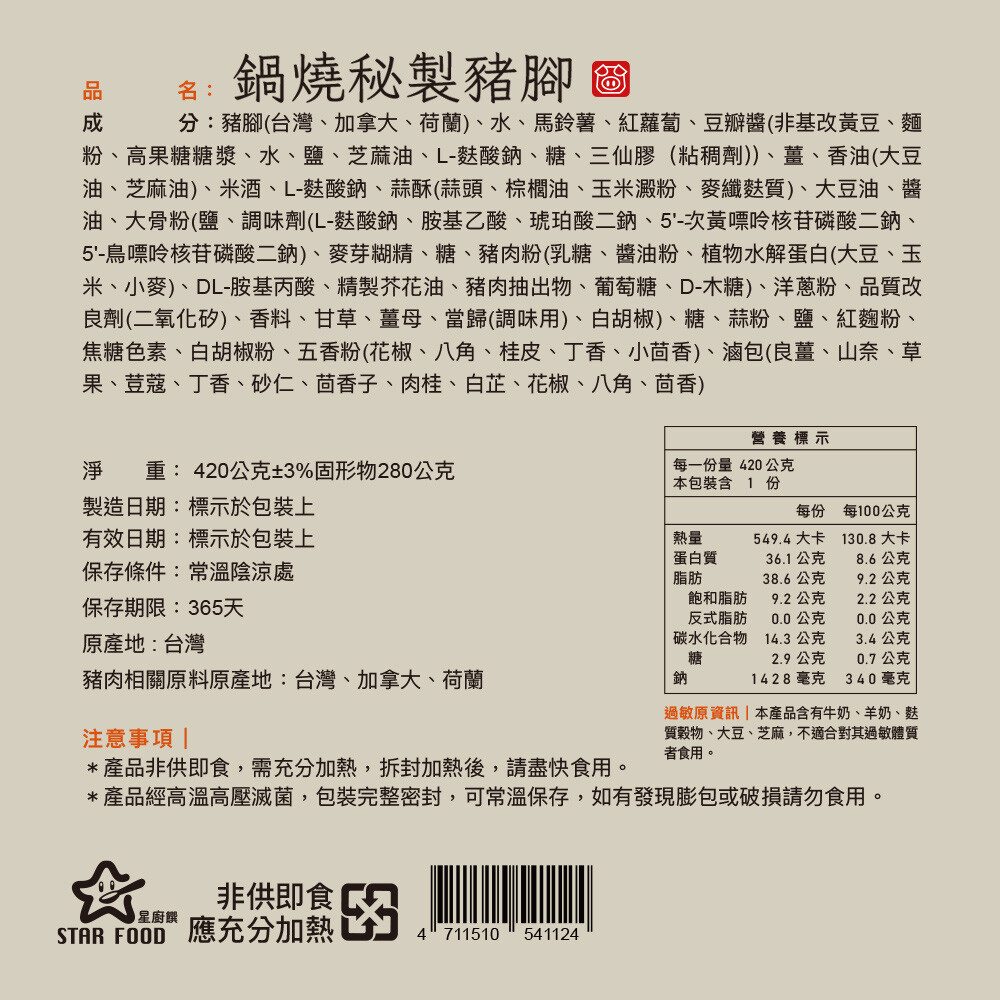 鍋燒秘製豬腳-420g(固形物280g)/盒