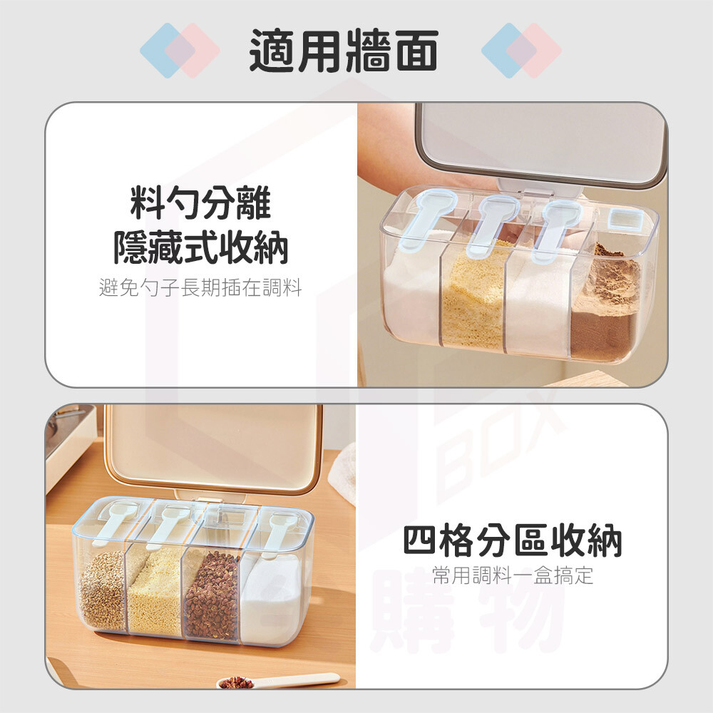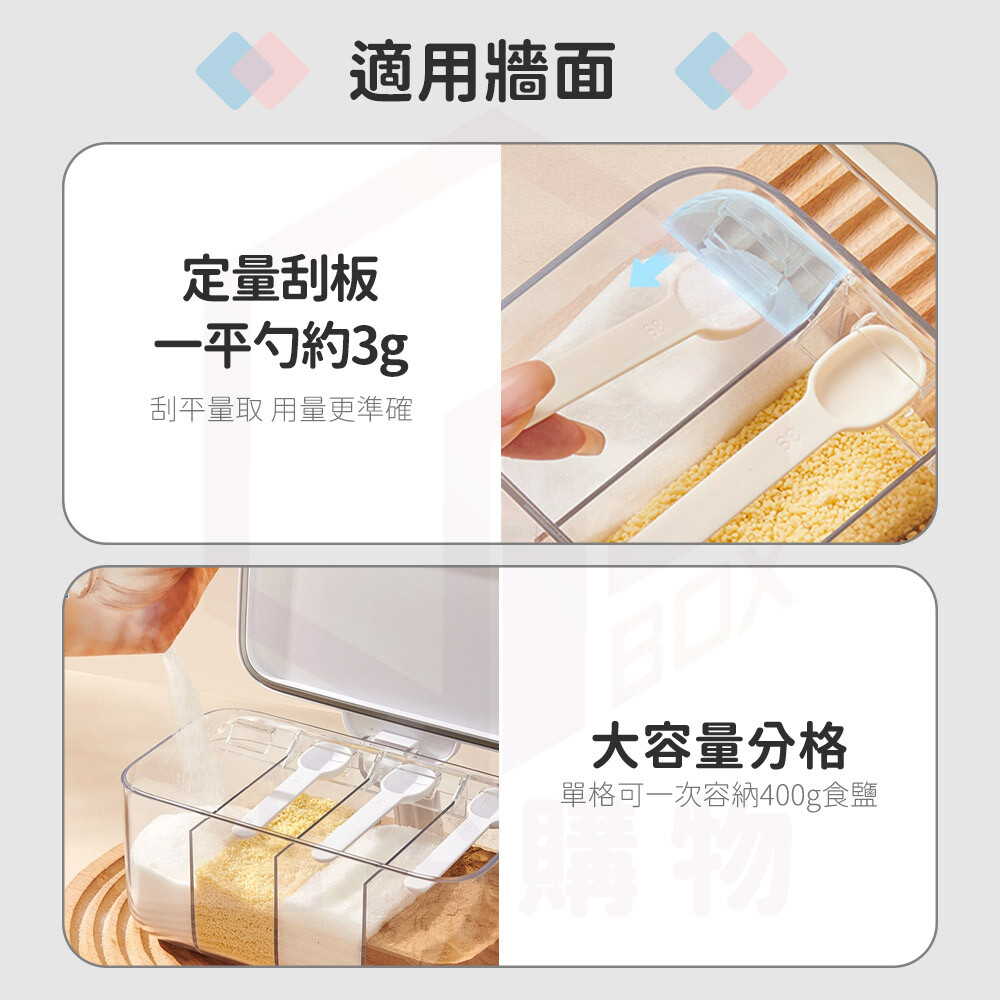 一盒多用,鹽、糖、香料、胡椒等通通有位子,分類整齊又便利。