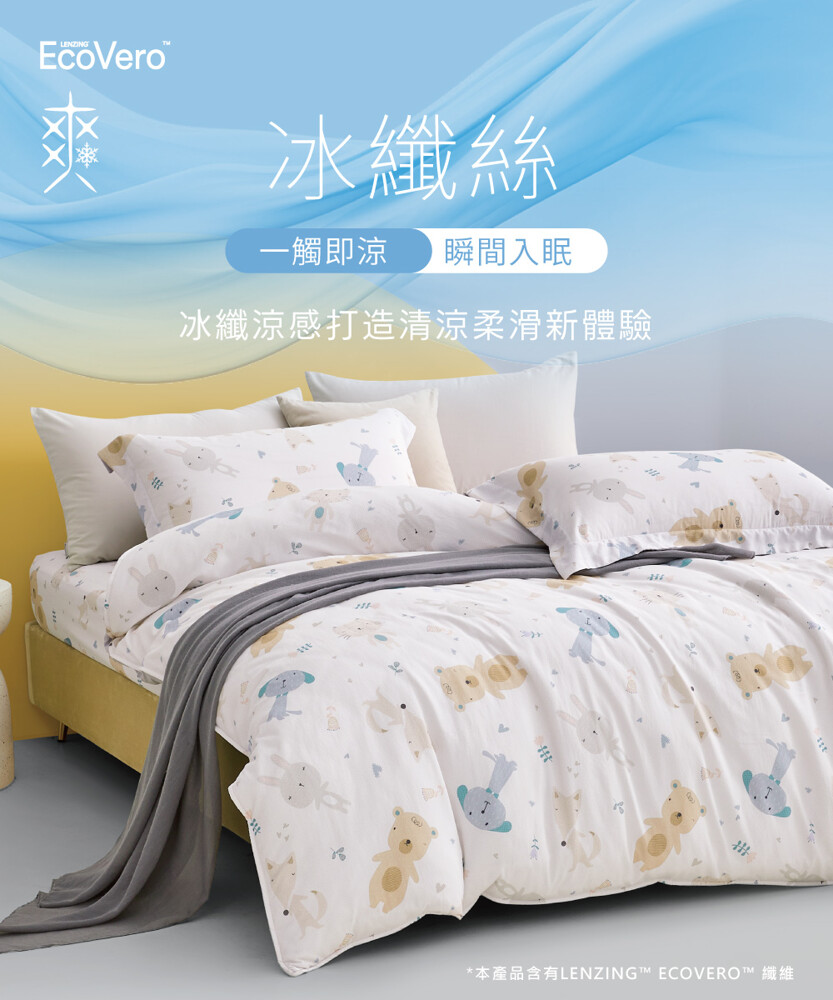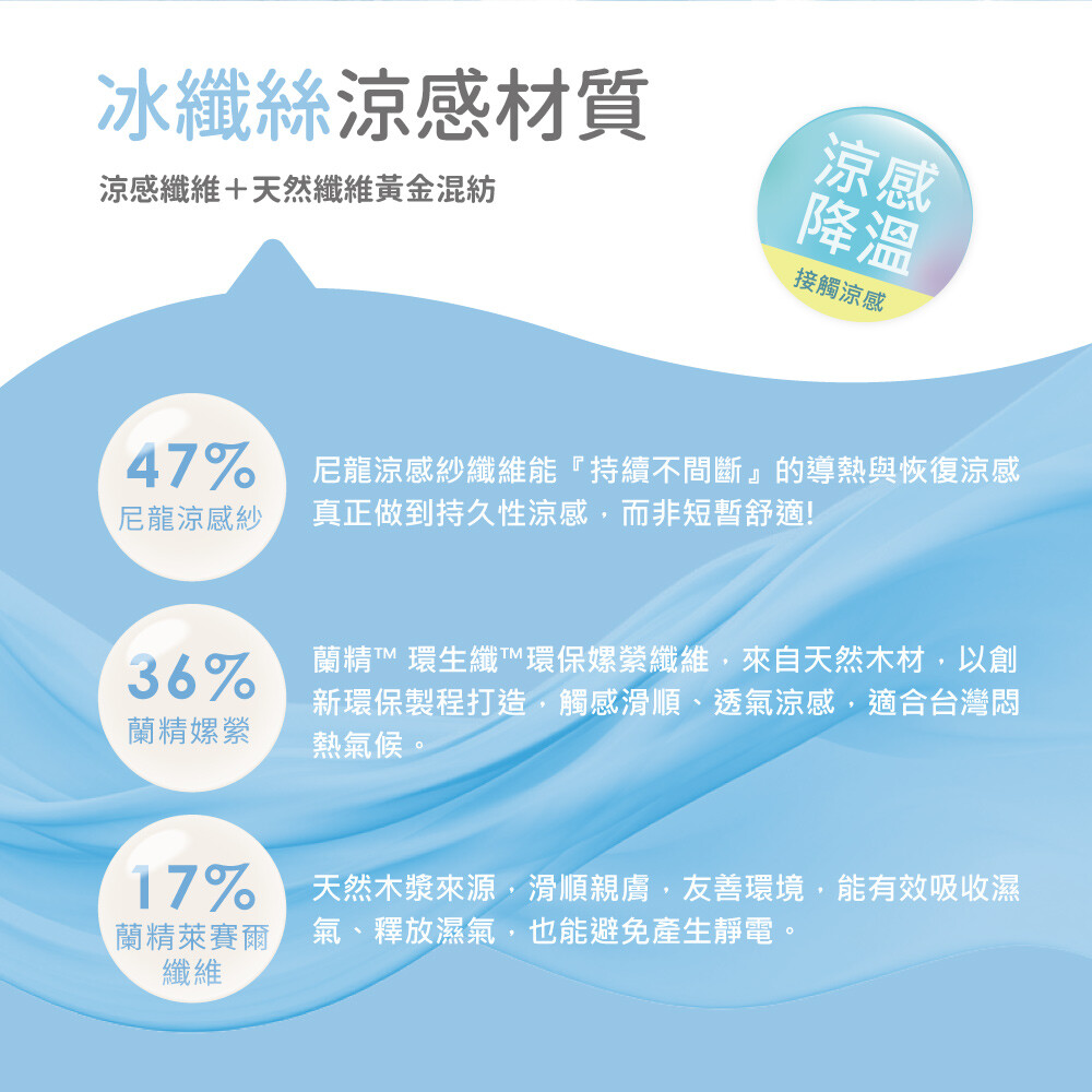 告別悶熱黏膩的夜晚,換上來自奧地利LENZING™原廠授權的冰纖絲涼感系列,享受涼爽、柔滑、又環保的舒眠體驗。