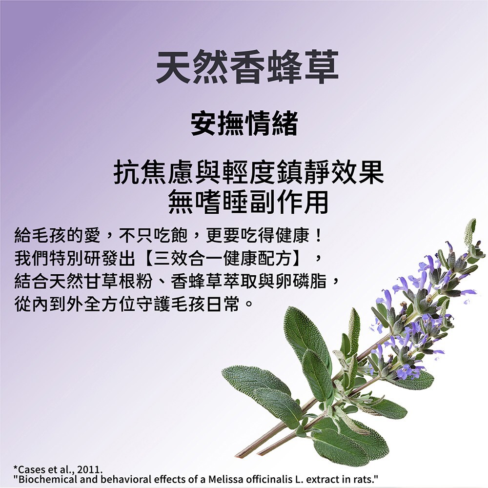 🔸含天然香蜂草,穩定情緒、緩解焦慮,適合高敏貓咪或緩解外出與陌生環境緊張