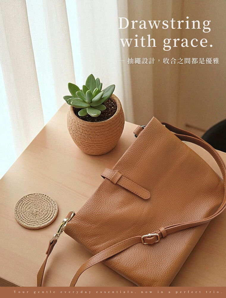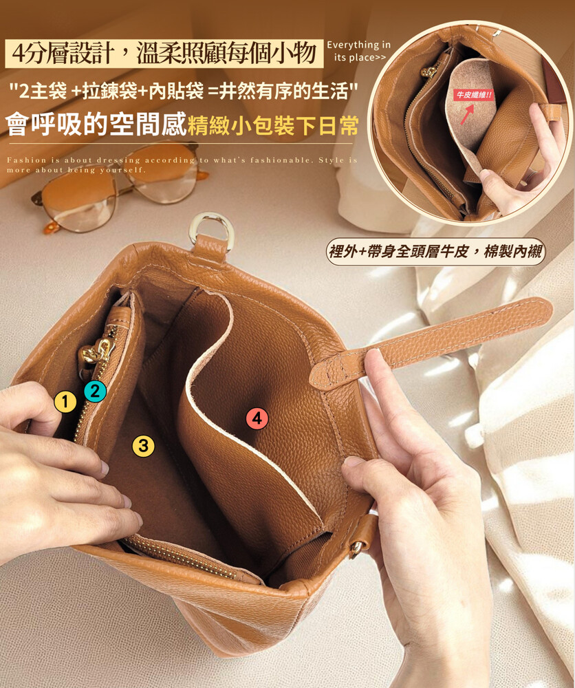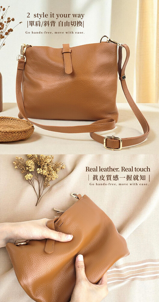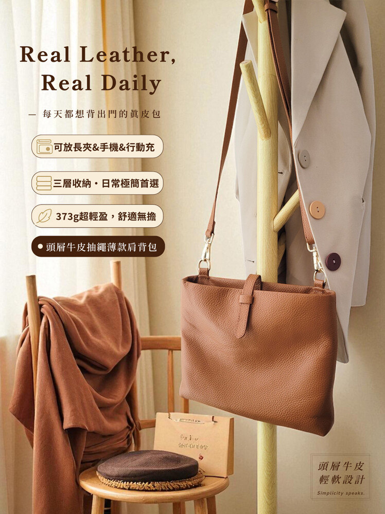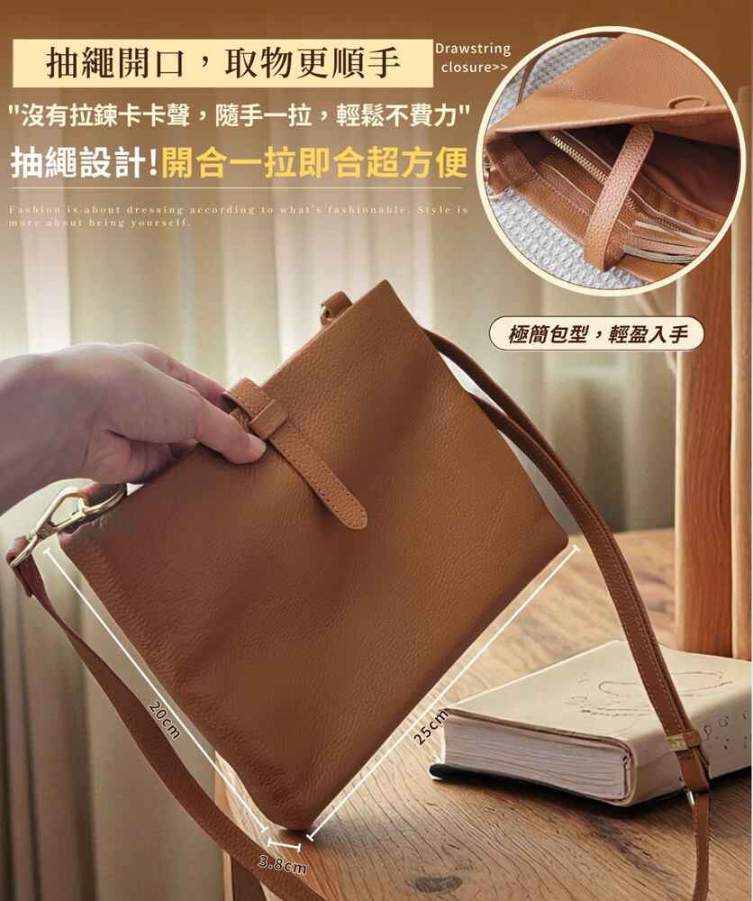 商品名稱:【喜番屋】真皮頭層牛皮薄款抽繩女士單肩包斜肩包肩背包女包【LB1185】
