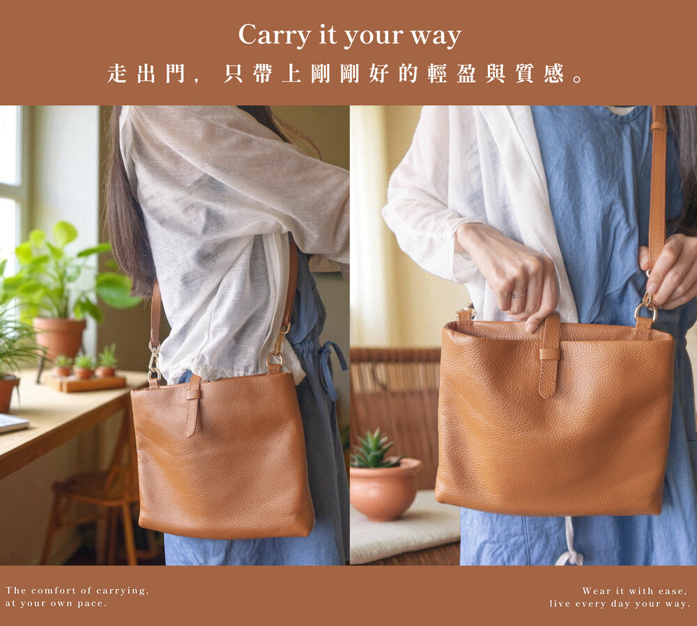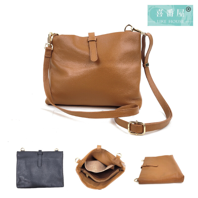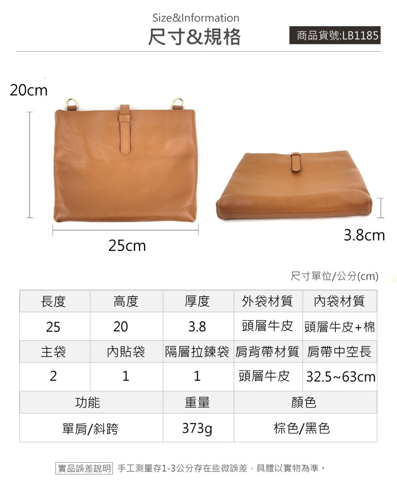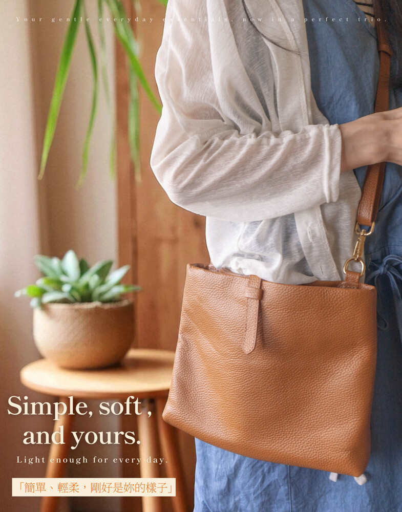 商品名稱:【喜番屋】真皮頭層牛皮薄款抽繩女士單肩包斜肩包肩背包女包【LB1185】