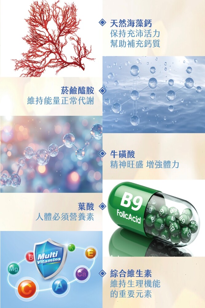 🧂 海藻鈣+牛磺酸,提升體力續航