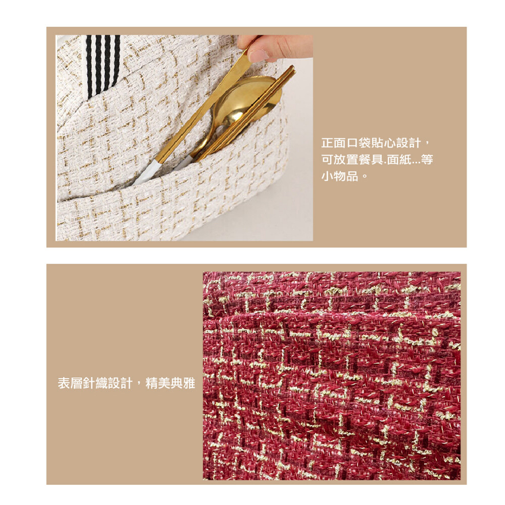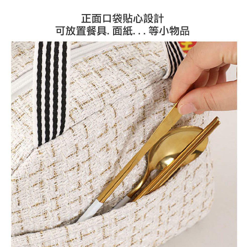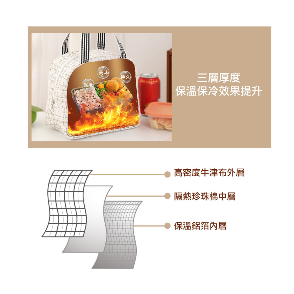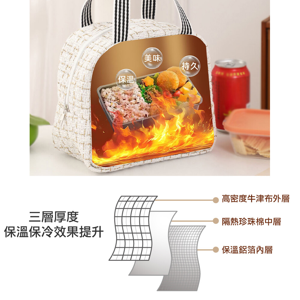【商品特色】 前側口袋,貼心設計 寬版提袋,舒適不扎手 編織面料質感提升 上班、聚會、隨身包皆適用 【商品規格】 材質:牛津布 / 珍珠棉 / 鋁箔 尺寸:23X14X20公分 (±1公分) 款式:黑色 / 酒紅色 數量:1入/2入 產地:中國